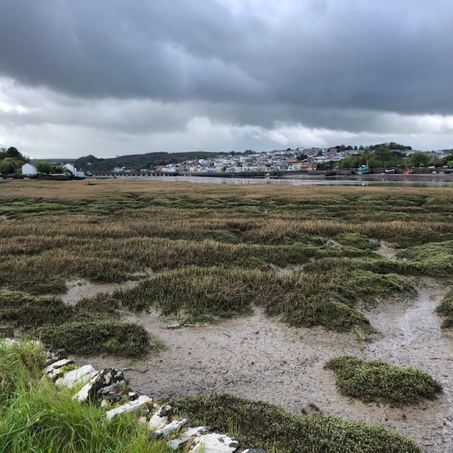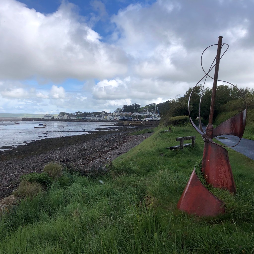 So, to complete my first week, a slightly shorter, and flatter, walk than the other sections of recent days, punctuated throughout by numerous rain showers of varying intensity and trajectory. Whilst the waterproofs never came off, today was genuinely a lovely walking day – first on country lanes down the Yeo valley, shrouded in the verdant and glistening light greens of abundant spring growth, before a dozen or so miles on the Tarka Trail, first over the estuarine Torridge, then past Bideford and Instow, before arcing eastwards along the tidal reaches of the River Taw and into Barnstaple. Some wonderful, if wet, views throughout.