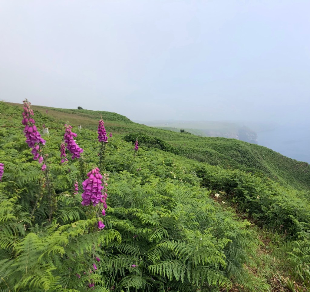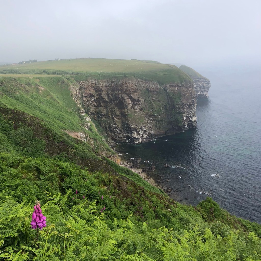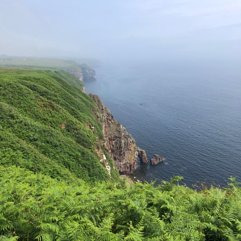 Tonight I am staying just north of Dunbeath in the Inver Park House B&B that also has a small and lovely campsite. Blue skies greeted my arrival, and then over the coming hour, as the sea fret, or haar, came in, the swirling mist created changes in the light every minute. On an evening stroll I had blue sky above but a rolling mist around me on three sides, with an ever-changing quality of evening light. Having been on the other side of the world for a while, this is my last evening alone, as Rachel is flying up tomorrow to join me, and I’m so pleased that we will be able to share together, for a few days, the experience of this beautiful corner of the country.