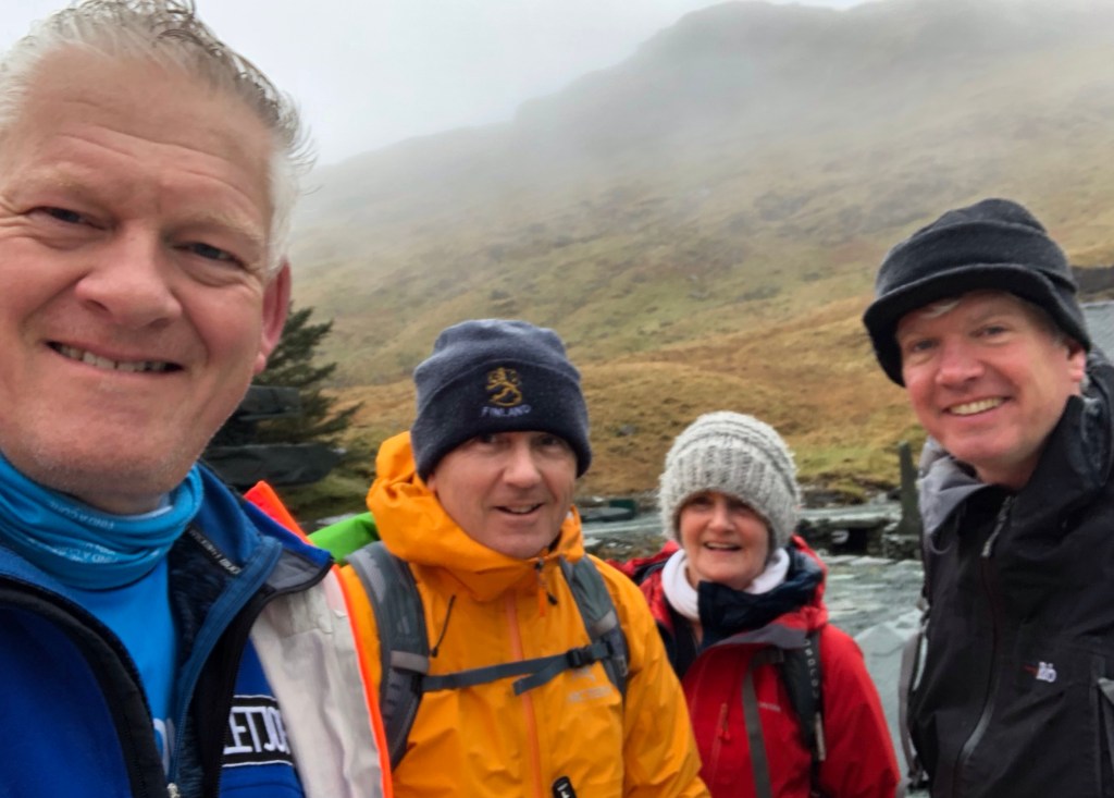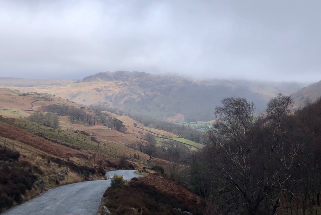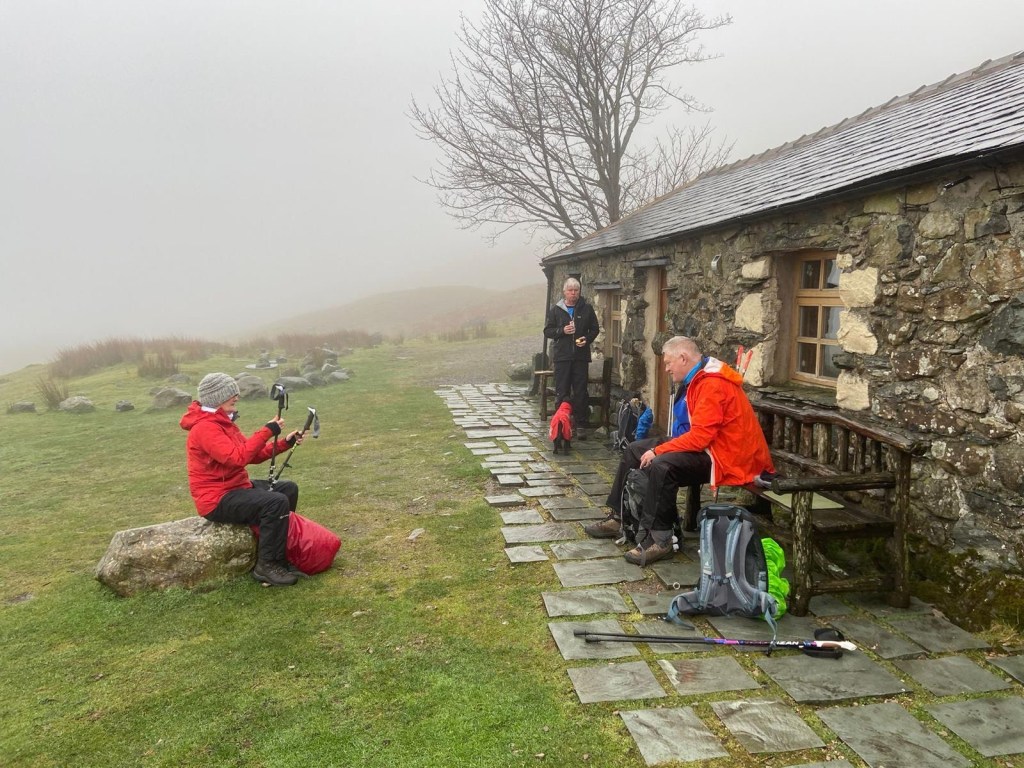 Our afternoon comprised an orienteer through leaden drizzle over the lower slopes of Hay Stacks, before a steep climb up the stone steps of the gulley beneath Grey Knotts to the eventual col above the Honister Pass. We then climbed down the dismantled tramway route to the Honister Slate Mine for a well-earned tea and cake, before a steep three-mile descent through Seatoller to our evening refuge at the Scafell Hotel in Rothswaite.