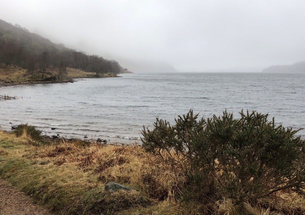 Following a short road section we traversed the arduous slopes alongside the southern shore of Ennerdale Water, the low cloud and mizzle affording just monochrome views across the water to the forests beyond, but precluding any views of the hills above.