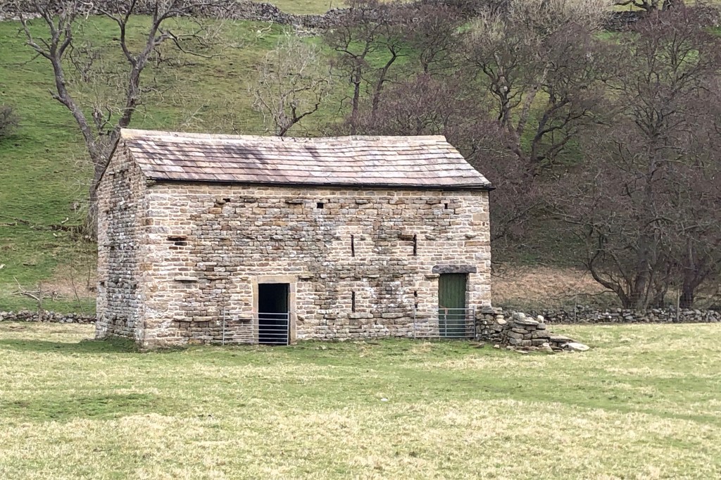 Eventually our route flattened as we made our way past stone barns and across the grazing pastures that bound the River Swale. At every turn of the path we were greeted by new glimpses of the tree-lined river, rocky outcrops, grazing land, and yet another moorland view. It is simply wondrous here, wandering through secret glades scented with wild garlic and rejoicing in the sounds of babbling water, birdsong, and the bleating of sheep in nearby meadows.