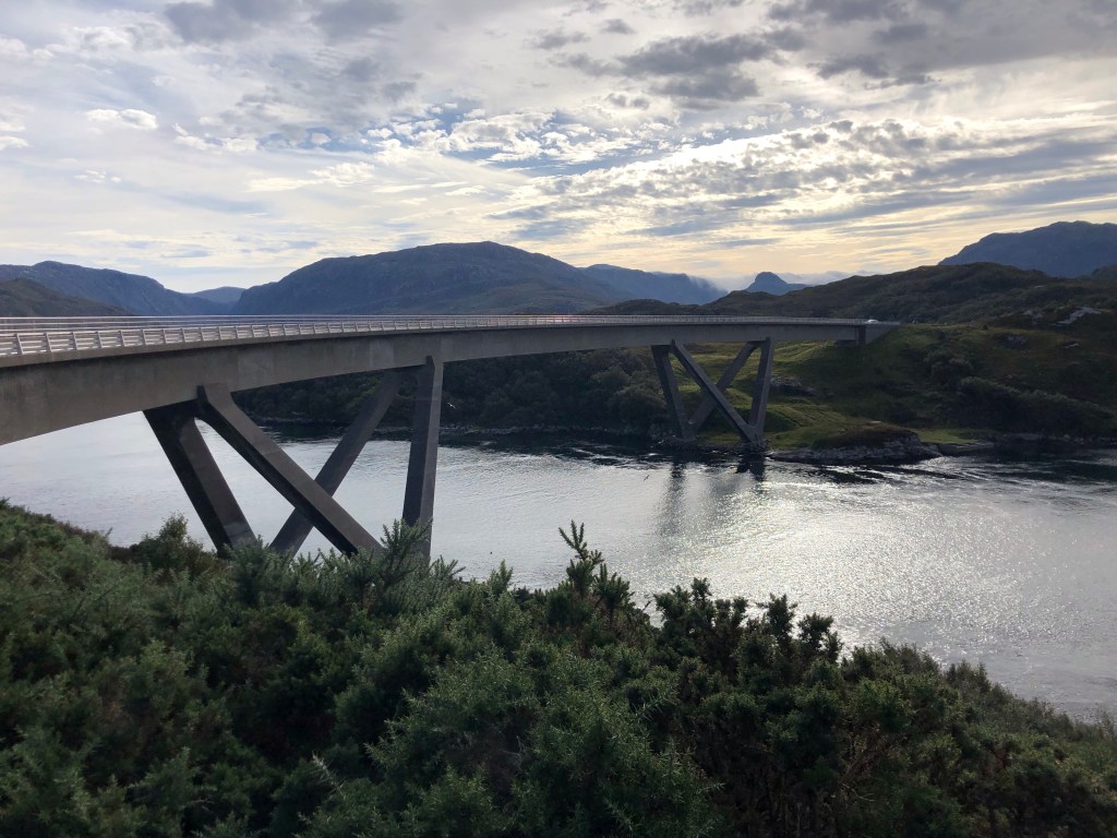 Once more a lovely start to the day – it is so incredibly quiet here – and after a scenic breakfast we set off together, myself in Daisy, the camper-van, and the running team in Nessie, northwards through Scourie and Laxton Bridge over the 35 miles to Durness. The cyclists would follow our route later, whilst the runners would continue their daily exertions on the NC500 from Durness, turning eastwards along the north coast.