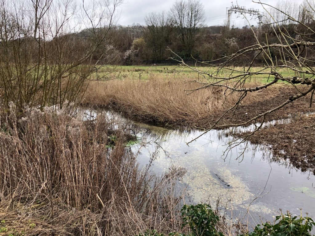 It was a bleak start today, grey skies, a chill breeze and some light but cold rain showers that each required the donning of waterproofs. These conditions are all a part of winter walking of course, although the brighter afternoon and a little sunshine was most welcome. I’m pleased to share some views of the walk, taken generally during the drier moments, of what ultimately proved to be a pleasant southward ramble along the flat and even towpath of the Grand Union Canal.