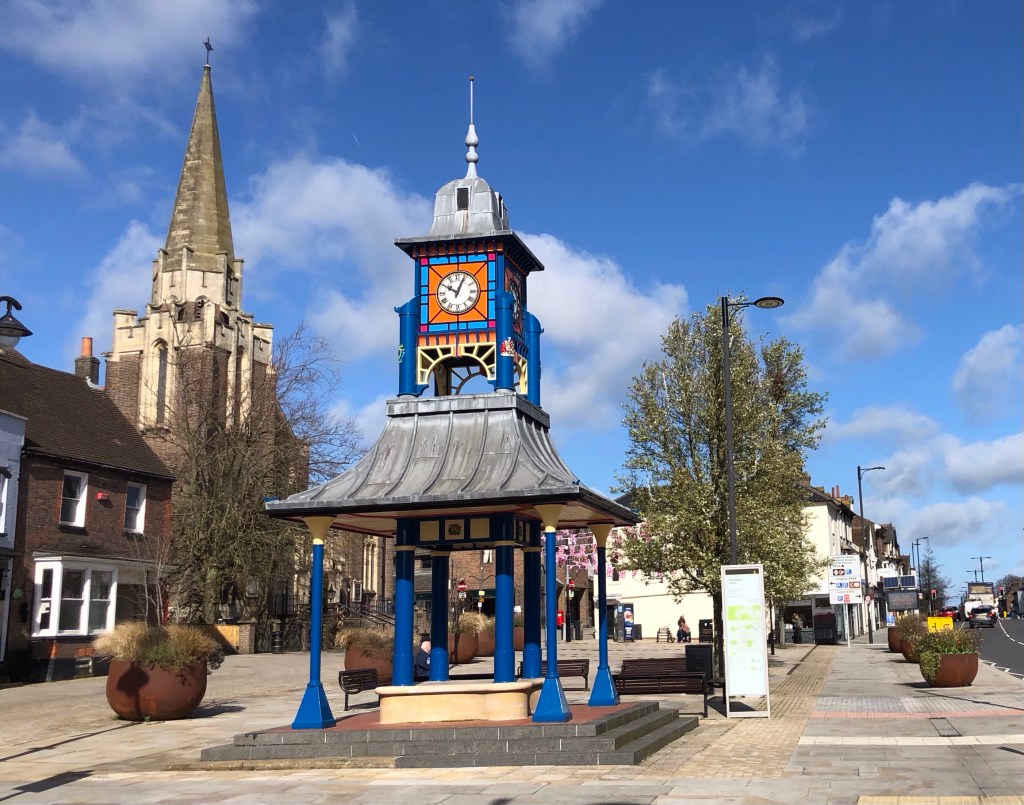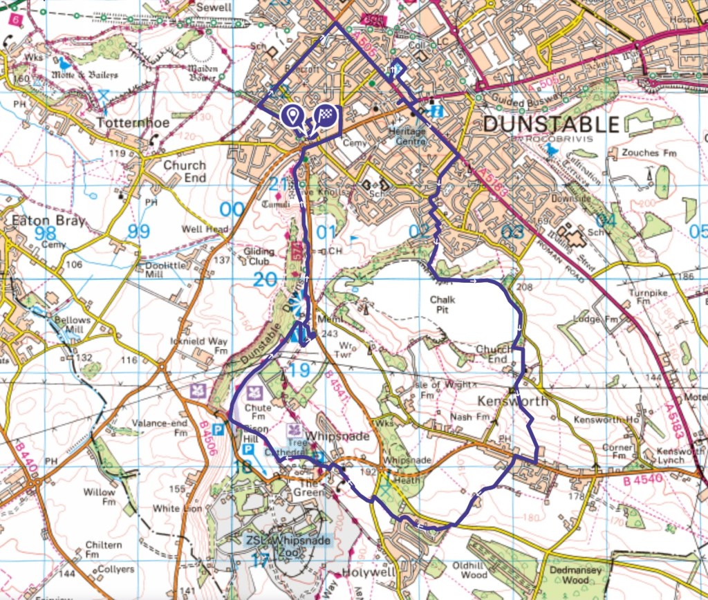 Dunstable has a long and fascinating history, largely on account of its location at the eastern end of the Chiltern Hills. Palaeolithic and Bronze Age remains indicate prehistoric human occupation in the area, specifically along the West to East route of the Icknield Way, an ancient thoroughfare that lays claim to being ‘the oldest road in Britain’. Running across this highway, north from London, the Romans built Watling Street, and from around AD 40 a settlement appeared at the intersection. The eventual town of ‘Downs Market’ established itself through the Medieval period on these important trading routes, and as well as a transit point Dunstable has become, in more recent centuries, a centre for the printing and, later, the motor vehicle industries. I had the opportunity today to explore a little of the town’s varied past: