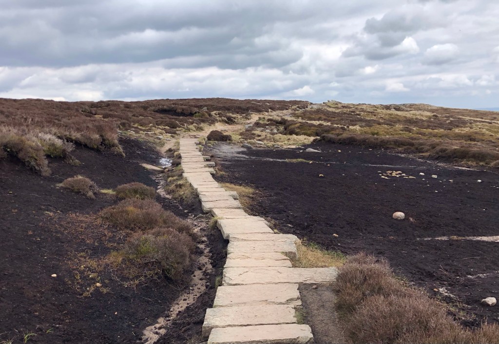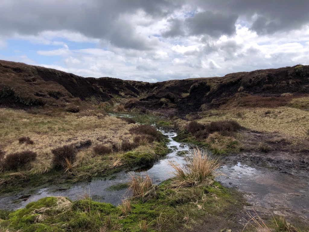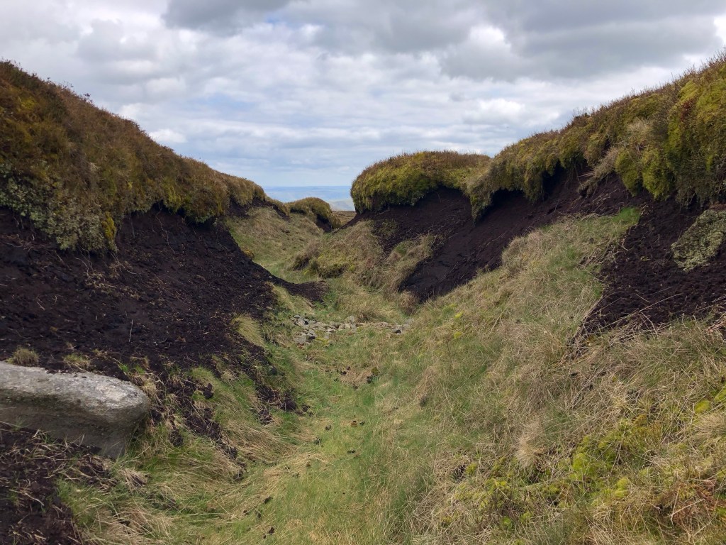 An early start from home saw me in Edale by mid-morning for this testing 13-mile hike: six miles along the Pennine Way (mostly uphill) before a trudge over the peat-bog plateau to the summit and a return scramble down the steep and rocky Grinds Brook gorge