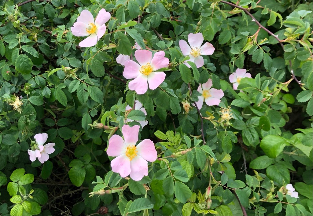 My walk began in Shipston-on-Stour, revelling in past floricultural glories Crossing the River Stour on the road bridge at The Old MillA green lane out of the town . . .. . . leading into the ‘Highly Commended’ wheat-fields . . .. . . and past many acres of broad bean plantsAn inadvertent visit to North Cotswold Brewery that I happened upon at Ditchford Farm – and on brewing day too, with all the wonderful aromas of malt and hops!Wild roses in the hedgerowCrossing the Fosse – now adopted (over this section) as the A429 main road, the straight-as-a-die 230-mile Fosse Way was built originally by the Romans during the first two centuries AD to link Exeter and Lincoln, along a route that was for some decades the western frontier of the Roman Empire in BritainAlong green tracks through sylvan glades . . .. . . and over the grazing lands . . .. . . to the pleasant village of Stretton-on-Fosse, and a first view of far-off Ebrington HillBack into the fields, the view eastwards over to Brailes Hill, in the distance with a spinney on its topThe honey-toned ironstone and thatched roofs are characteristic of the charming cottages in these parts, as seen here in Ebrington villageAt last, approaching my destination peak for the day . . .. . . the summit of Shakespeare’s County, Ebrington Hill, at 261 metres of elevation: with a topographic prominence of 111 metres the mount falls a little short of achieving ‘Marilyn’ status, but nonetheless enjoys some fine views across the Vale of Evesham and as far as the Malvern Hills in the distant western hazeStarting my eastward descent, and not a bad spot for my sandwich lunch!Cows in the fields near Darlingscott . . .. . . and back in Shipston – on the market square and dating from the 18th Century, the White Bear is a traditional coaching inn: the bear and ragged staff on the signboard is a heraldic emblem that the shire adopted in recognition of Morvidus, a legendary Earl of Warwick who is said to have ‘slain a giant with a young ash tree torn up by its roots’
