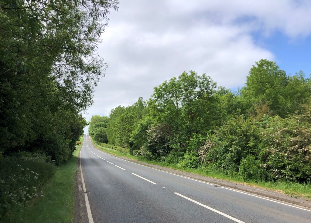 Ebrington Hill, the top point of Warwickshire is at the top left corner of my route map for today, depicted by the dark blue line – my start point was Shipston-on-Stour to the right of the map, then taking a clockwise route to the peak via the villages of Stretton-on-Fosse and Ebrington, before a more direct descent back along the paths, tracks and lanes to Shipston: the straight diagonal green road on the map is the Fosse Way (described below)