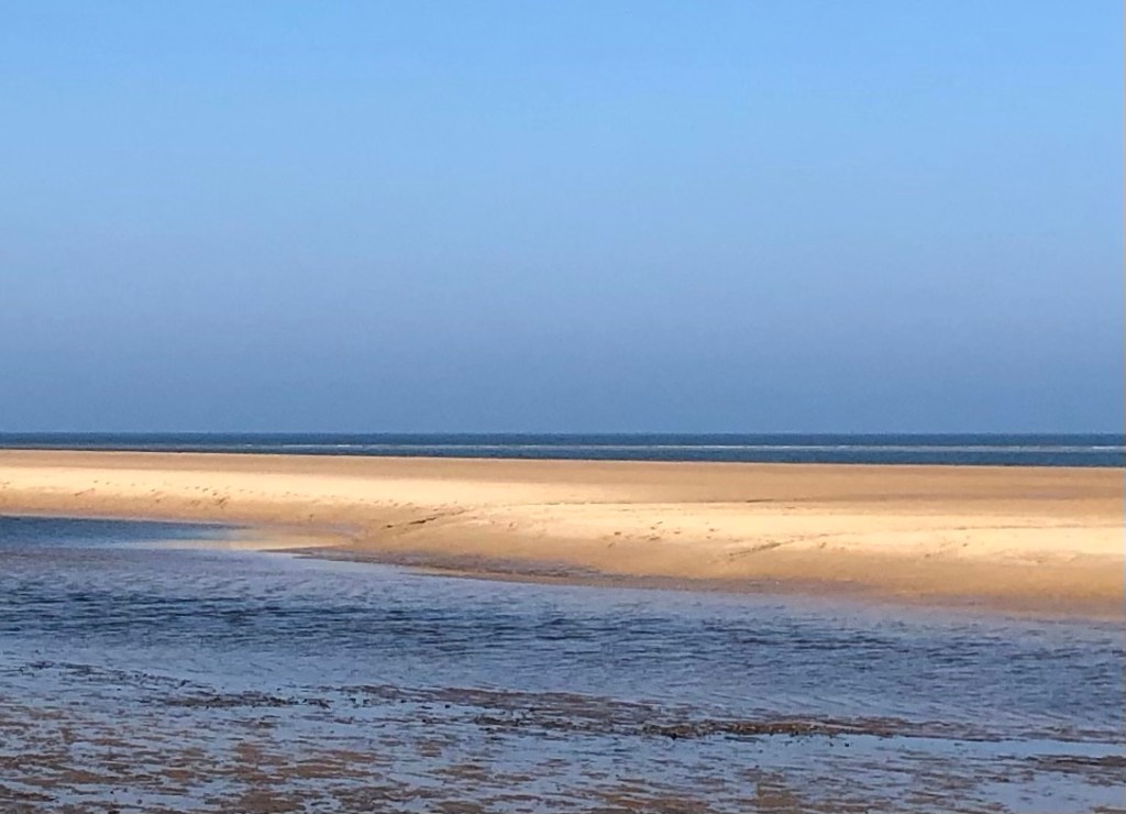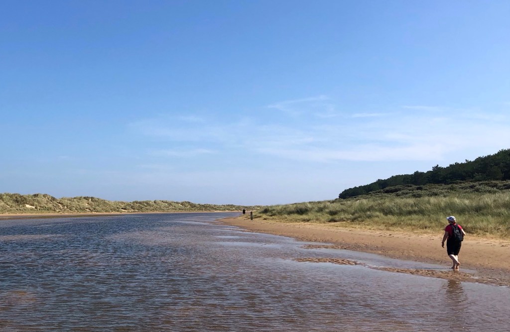 Well, we all need a break from time to time, and this week my LETJOG Peaks challenge is on hold whilst Rachel and I take in the sunshine of North Norfolk and enjoy a slower way of life for a few days. Despite the early autumnal heat such relaxation does not preclude a good walk, and (as regular visitors to this corner of our country over the years) we have already completed a couple of our favourite coastal rambles; on Monday around the expanse of beach, dunes, pine-forest, fields and parkland between Wells-next-the-Sea and Holkham (see my Blog ‘Shelter From The Storm’ of 1 February 2022), and then yesterday across the salt-marshes and along the creeks of Cley and Blakeney.