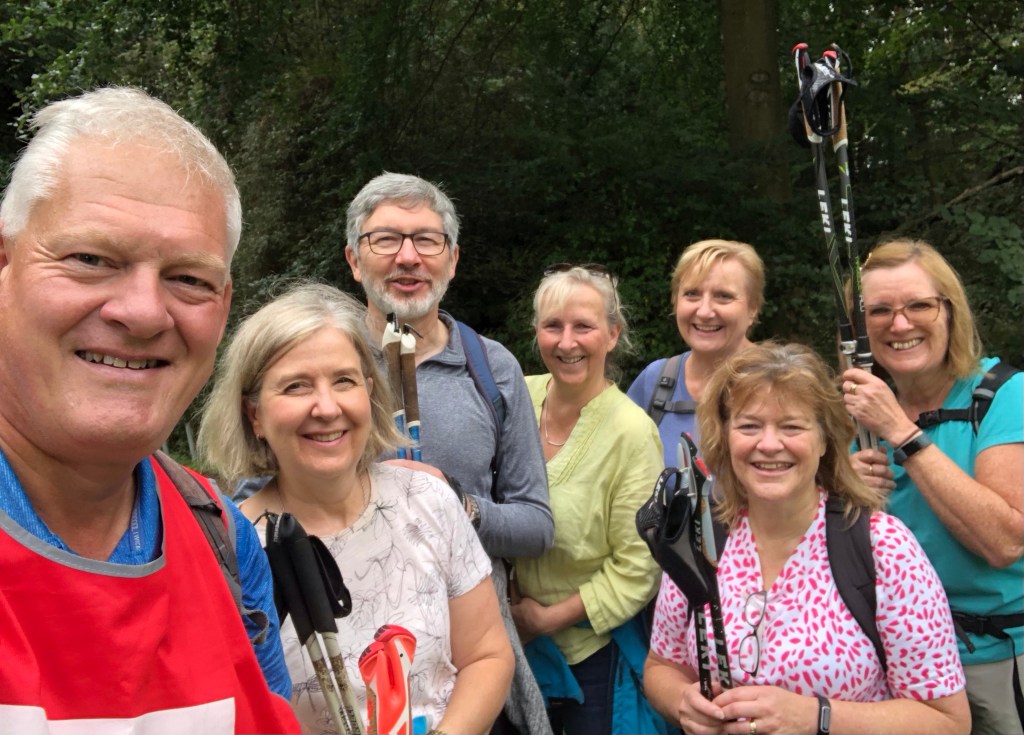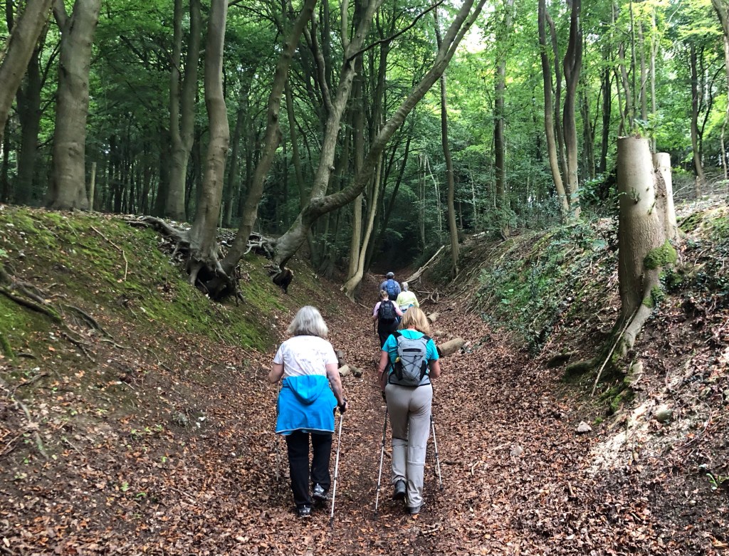 This walk, near my home patch, is certainly a most appropriate finale for my venture. Over many years Rachel and I would bring the children up to Wendover Woods for strolls, picnics and even occasional barbecues with friends, and so these woodlands have been special to us for a long time. It is fitting also, after all her support of my venture (emotional and practical), that Rachel could join me on the walk today. We were also accompanied by five good friends from our Chiltern walking group – Helen, Christina, Angela, Paula and Richard; usually it is on a Saturday that we all set our alarms for a walk, but on this sabbath, even with rain in the forecast, these kind folk boldly agreed to meet for a 9.00 am start in Wendover village ahead of our five-hour ramble. As things transpired the weather gods were on our side, and we had dry conditions throughout, with the promised downpours arriving just a couple of minutes after our return to Wendover. Here is the story of our walk.