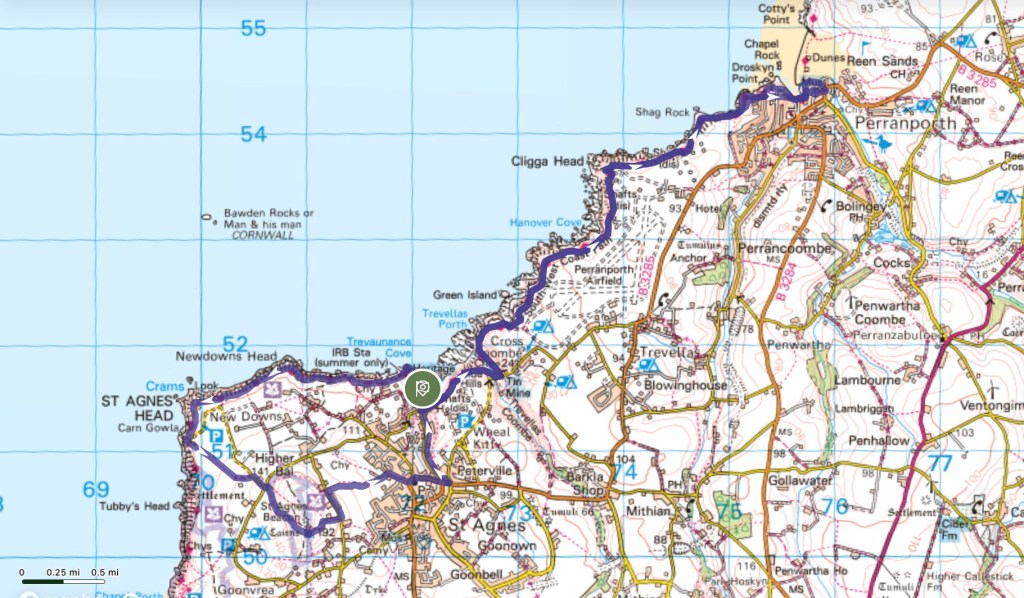 Two of our favourite north Cornwall walks here: the first a circular walk north-westwards from Trevaunance Cove along the South West Coast Path, then cutting inland to the top of St Agnes Beacon and back through the town, and the second an out-and-back eastward walk along the cliffs to Perranporth, again on the Coast Path