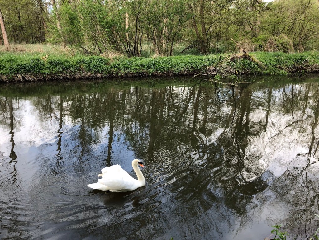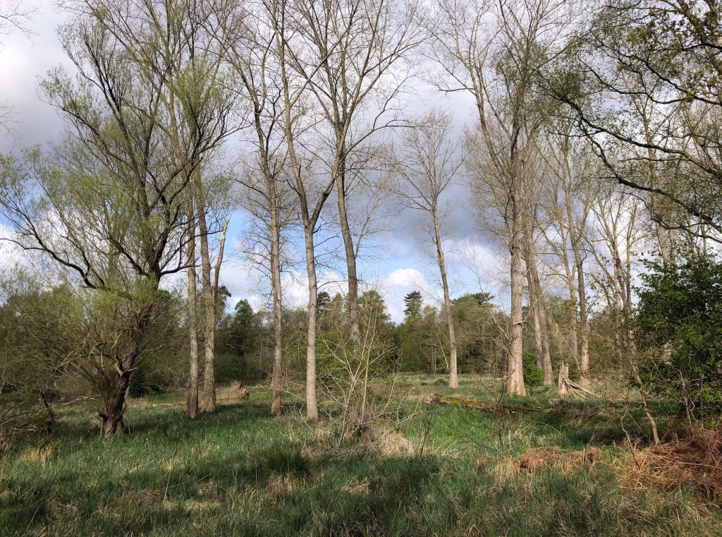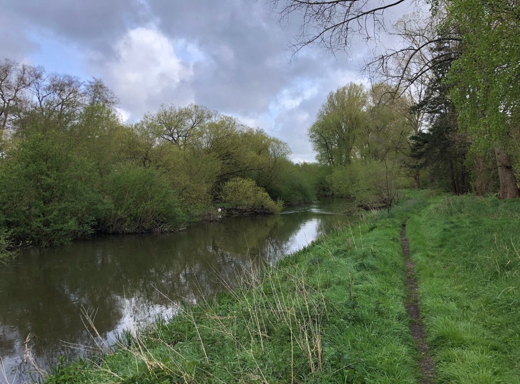 My walk itself, aside from the pavemented town sections, was entirely off-road today, on flat and easy tracks, making for a walk that was comfortable on the joints, and suited to fast progress. With no lanes, and very few other folk around, I was hoping for another show of wildlife to match that of yesterday, but in this regard the day did not quite live up to the level of its predecessor. I did see plenty more deer though, including the white rumps of fleeing roe deer, along with many squirrels and rabbits, much evidence of badgers and moles, and more of the game birds of yesterday. Woodpeckers once again, and my first cuckoo of the season, joined the caws of many crows, an occasional skylark trill, and a songbird chorus from the hedgerows, in an avian soundtrack to the day. The information board near the river at Two Mile Bottom advises of the presence of many bat boxes that support populations of five species of native bat, although these refuges are sited, presumably, well away from the walking paths. Here is my photo record of the day.
