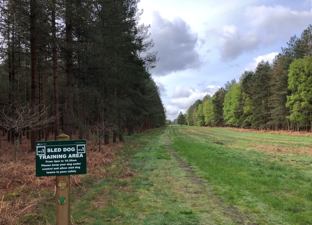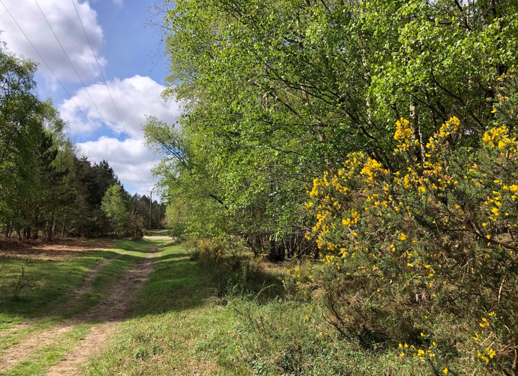 I mentioned yesterday the changes in the landscape as I reached the edge of Breckland (or ‘The Brecks’ as I am informed the area is known locally), several miles before I reached Thetford. Well today I completed my traverse of this distinct area of sandy heathland and conifers, with barely another soul for company all day. The sand and gravels that make up the soil are the result of deposits washed southward during the Ice Age from the melting glaciers to the north: along with the dry climate here, these conditions make the land generally unsuitable for farming. The area was inhabited in prehistoric times, when flint was mined at Grimes Graves near Thetford, and much of the natural vegetation was cleared at that time. In more recent centuries commercially farmed non-native conifers have been planted over much of the area – but some clearings remain as important and protected wildlife habitats for endangered and uncommon species, such as nightjars, woodlarks and stone curlews, as well as many rare bats, moths and specialist plantlife.