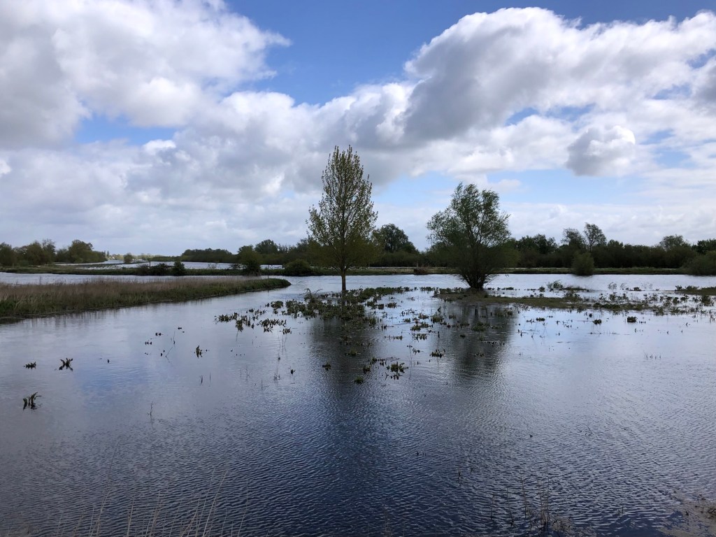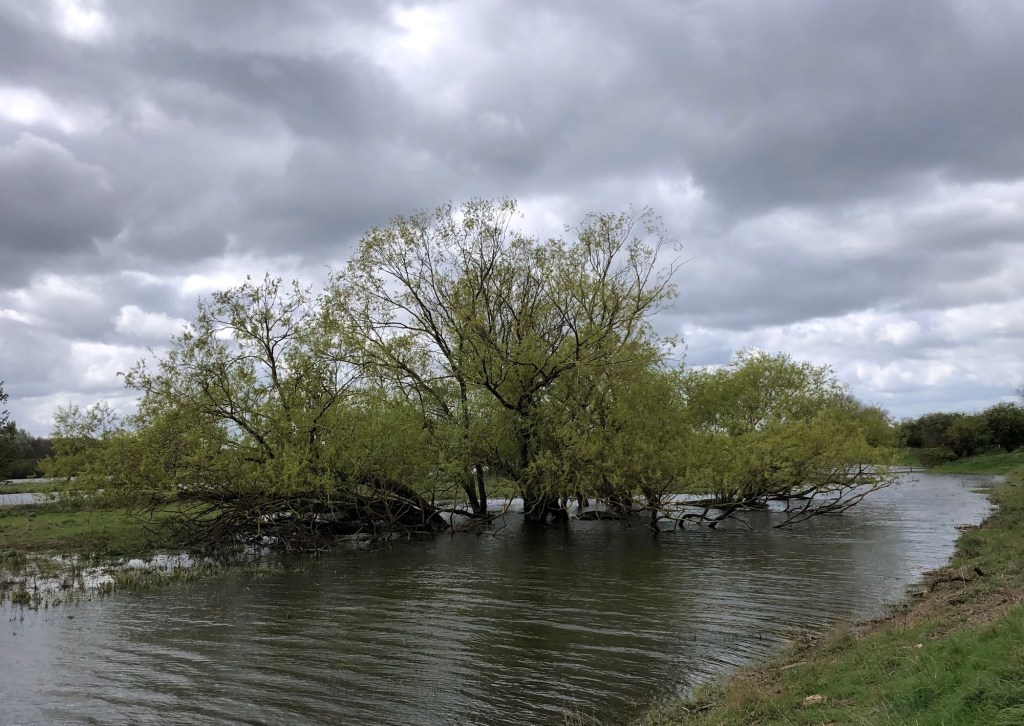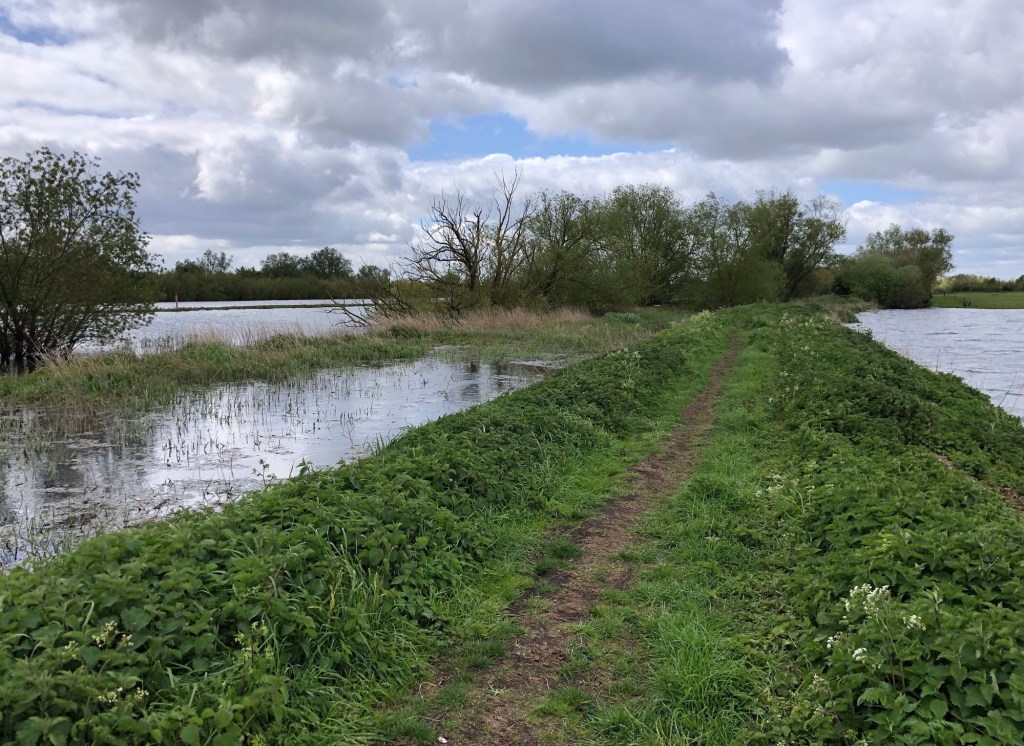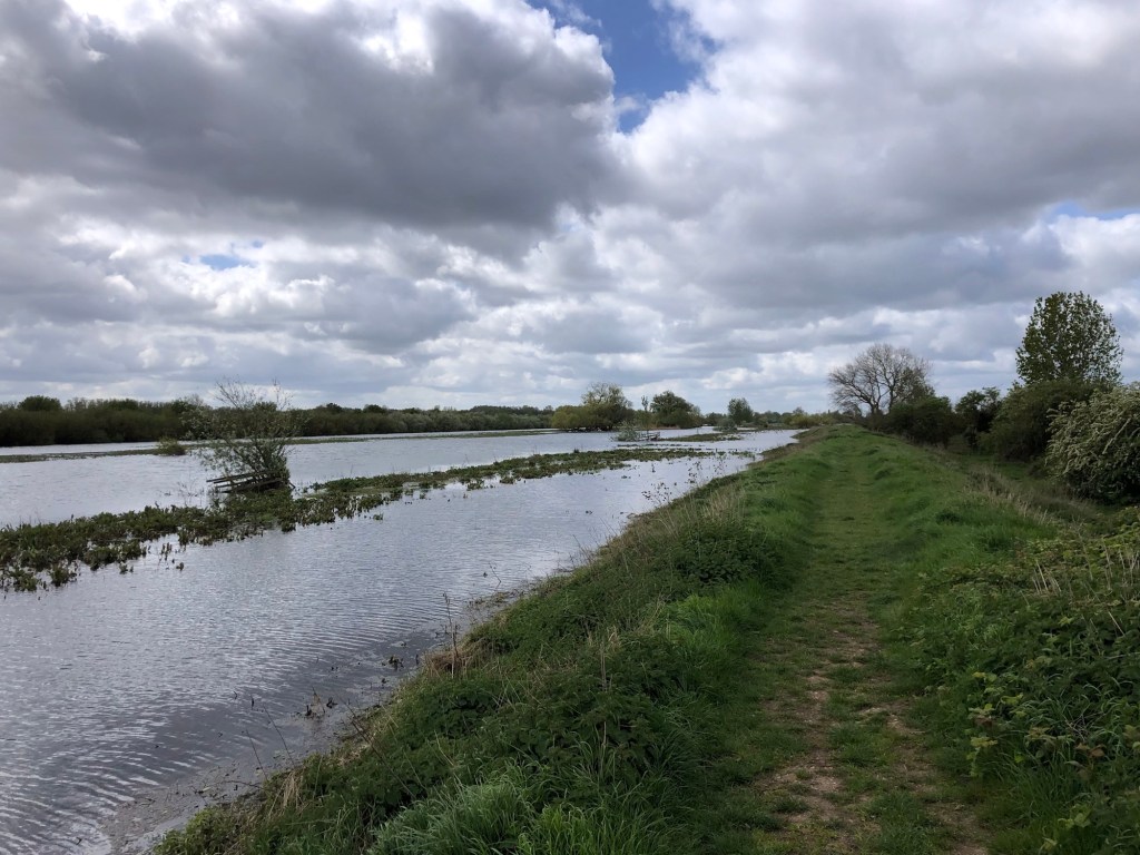 The Fens are a region of England that I have visited just occasionally, and I have never before stayed overnight here, nor done so much as a single day’s walk in the region until yesterday’s trek into Ely. For much of this morning my walk crossed a not dissimilar landscape to yesterday, of drainage ditches and flat farmland – I could have dropped a spirit level anywhere along the path and the bubble would have stayed pretty much in the centre. Things changed at Earith, not so much as regards any gradient, but in terms of interest, with my route joining the Ouse Valley Way alongside the river. Reedbeds, flooded water meadows, and a few willows became the dominant features of the landscape here: blessed with dry weather and a cooling breeze, and with the flatness of the grassy path and the quiet isolation, I was able to set a good and meditative rhythm to my walk. A fine day indeed!