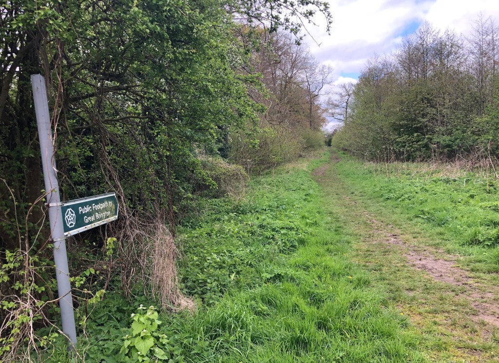 Despite missing home already, as I write this post in my motel room tonight, it is good to be back outdoors and in the country. Today’s trek was one of two halves; the first an urban walk out of Northampton followed by a straight section along quiet lanes, the second a delightful undulating transect of farmland through the charming villages of Great Brington, Long Buckby and Watford. This was a short day compared to some of my daily sections of last week, allowing me to ‘find my legs’ again after my day off, and to enjoy the country air and views at a leisurely pace – I hope the photos do justice to the experience.