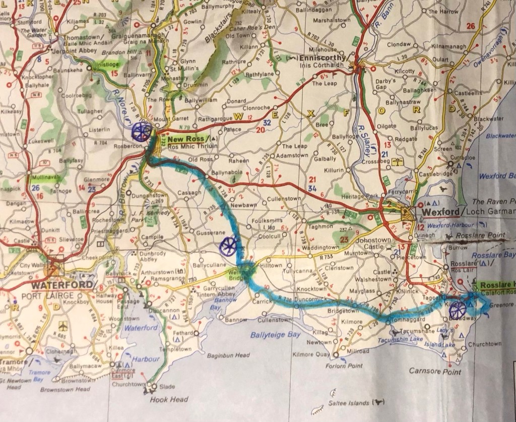 But my biggest thanks today though must be to Cian and Nicola. Stranded last night, with seemingly no hope of finding a place to sleep at my scheduled destination tonight, New Ross, I sent out an SOS. And so here I am, resting tonight just outside of Waterford, in the comfort of their home. We had not actually met until this evening – introduced, remotely, by Cerys, my elder son’s partner, we were due to get together at the end of my walk tomorrow, in Waterford. But here we are, a day early, and a few pints of Guinness to the good, thick as thieves. Thank you both, and to Dave ‘Burkey’ too, for the wonderful company, and to an evening of good humour and camaraderie.