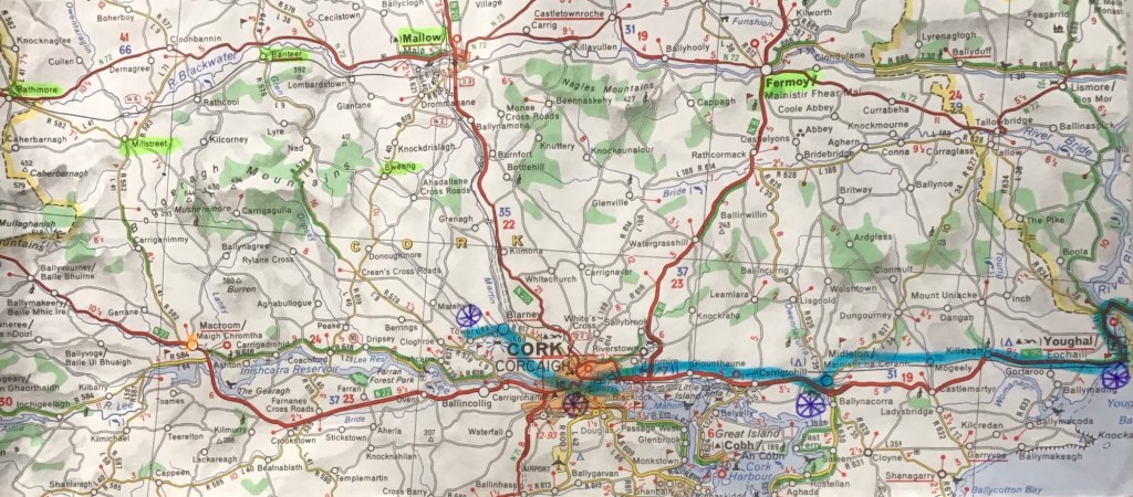 Notwithstanding the added degree of uncertainty over the remainder of my LETJOG E2W walk, the lack of any time pressure or personal commitments gives me a certain freedom over the next few days. I am also anticipating some of the finest walking country, as I cross the Boggeragh Mountains on my way to Killarney, before reaching the Atlantic coast of Ireland. The weather too is looking mainly dry for at least the next two days, and I am feeling somewhat rested – and a tad more eloquent perhaps – after a fine and gentle day.