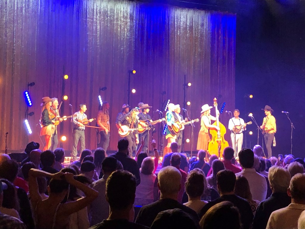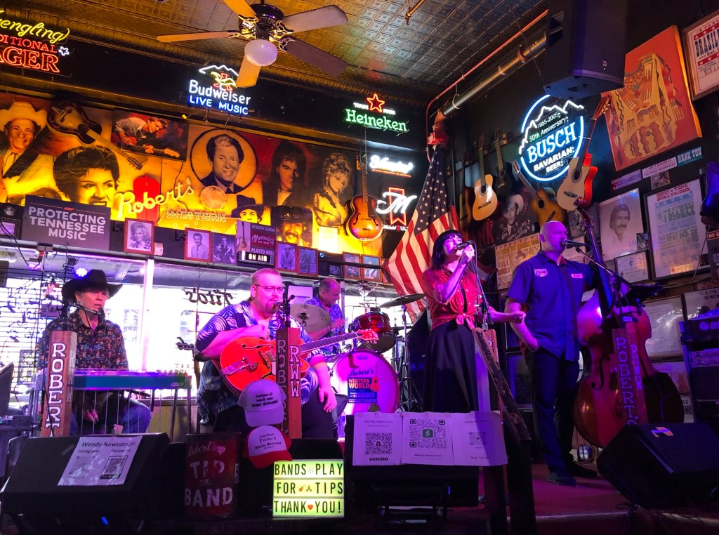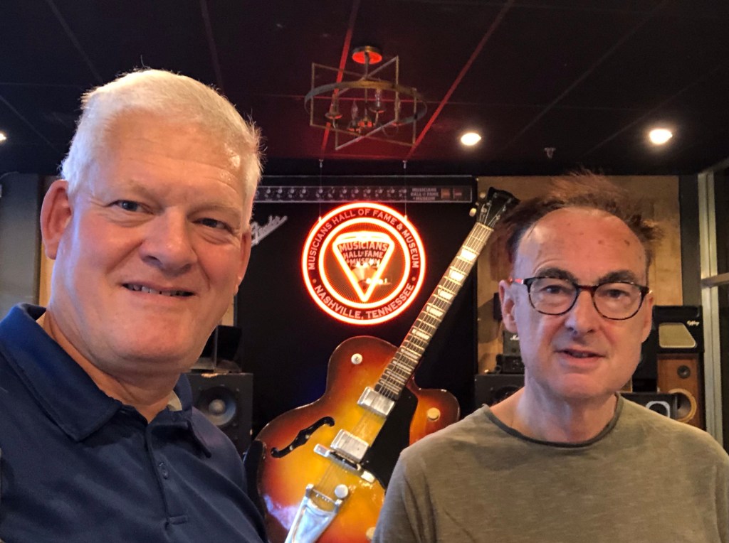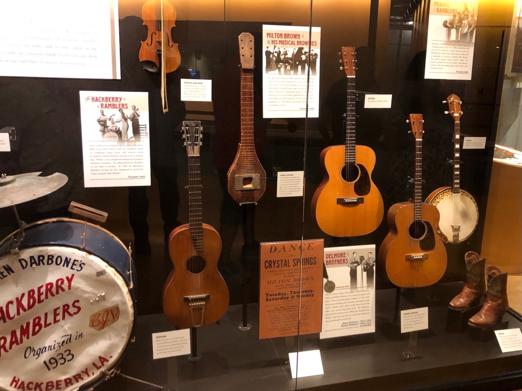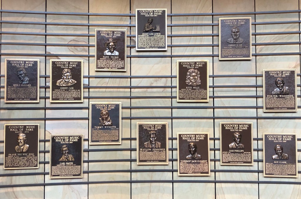 Next morning, on our thirty-minute walk into Downtown that was to become quite familiar, we passed through The Bicentennial Capitol Mall State Park, with views towards the Tennessee State Capitol building and the city centre beyond . . .. . . on our way to the Country Music Hall of Fame . . .. . . where the stars are alignedThe exhibition features the sounds, instruments, costumes and artefacts of Nashville over the decades . . .. . . from Elvis’ gold-plated Cadillac . . .. . . to Gram Parsons’ ‘Nudie Suits’ . . .. . . and right up to a present day tour busAnd there is even a chance to meet with the stars . . .. . . and to reflect upon their achievementsNext, a first experience of Downtown . . .. . . and a country covers group in Nudies Honky Tonk . . .. . . before a dinner of ‘Texan Smoked Brisket & Chips with Fried Bread’ (or a more healthy salad, as the case may be) in Von Elrod’s Beer Hall, near to our house in GermantownBack into Downtown for the evening show at the Ryman AuditoriumFirst up, ‘Montana-bred, Nashville-based’ rock/bluegrass band, TopHouse . . .. . . and an interval chance to meet Joe Larson, lead vocalist and guitaristThen the main act – the award-winning Molly Tuttle and Golden Highway, a renowned five-piece bluegrass band . . .. . . later joined by an array of iconic guests from the genre, that included Del McCoury, Bryan Sutton, and Lukas Nelson (son of Willie): a very special one-off evening that we were most fortunate to attendNot a bad ending to a very full first day in Music City!Next morning, whilst two of our number made an out-of-town taxi trip to ‘The Hermitage’, ex-President Andrew Jackson’s plantation home, Mike and I stuck with music history at the Musicians’ Hall of Fame, a museum that honours not just the stars but the process and all the people who, ‘regardless of genre or instrument’, have brought music to the world . . .. . . from the origins of recorded sound until the present dayBuddy Holly in concert . . .. . . a collection of Glen Campbell’s instruments and costumes . . .. . . Johnny Cash’s car and concert signage . . .. . . and a temporary exhibition on the life and works of Fleetwood Mac’s Christine McVieA chance to lay down an instrumentation track – for Mike, at least!Hanging out with ‘Country Gentleman’ Chet Atkins, a central player in the creation of the ‘Nashville Sound’ . . .. . . and then into Downtown again, to watch the revellers amidst the party buses . . .. . . before taking in some country covers from Wendy Newcomer and her band, the Nashville Cats, in Robert’s Western World – one of the many lively honky-tonks on BroadwayAt The Listening Room Café, a venue dedicated to up-and-coming singer-songwriters, the team reunited for dinner . . .. . . whilst enjoying the sequential acts from singer-songwriters Adam Craig, Josh Phillips and Matt Alderman: Phillips (centre, and playing) performed his recent self-composition ‘Dirt Cheap’, a cover of which, by Cody Johnson, is currently riding high in the charts‘Nights on Broadway’