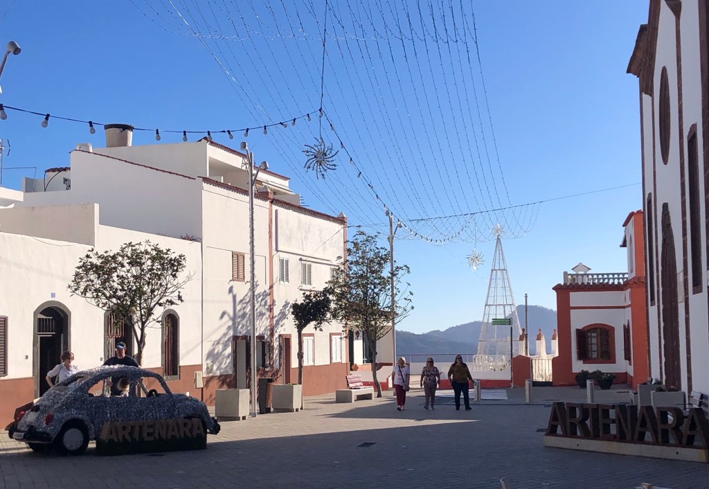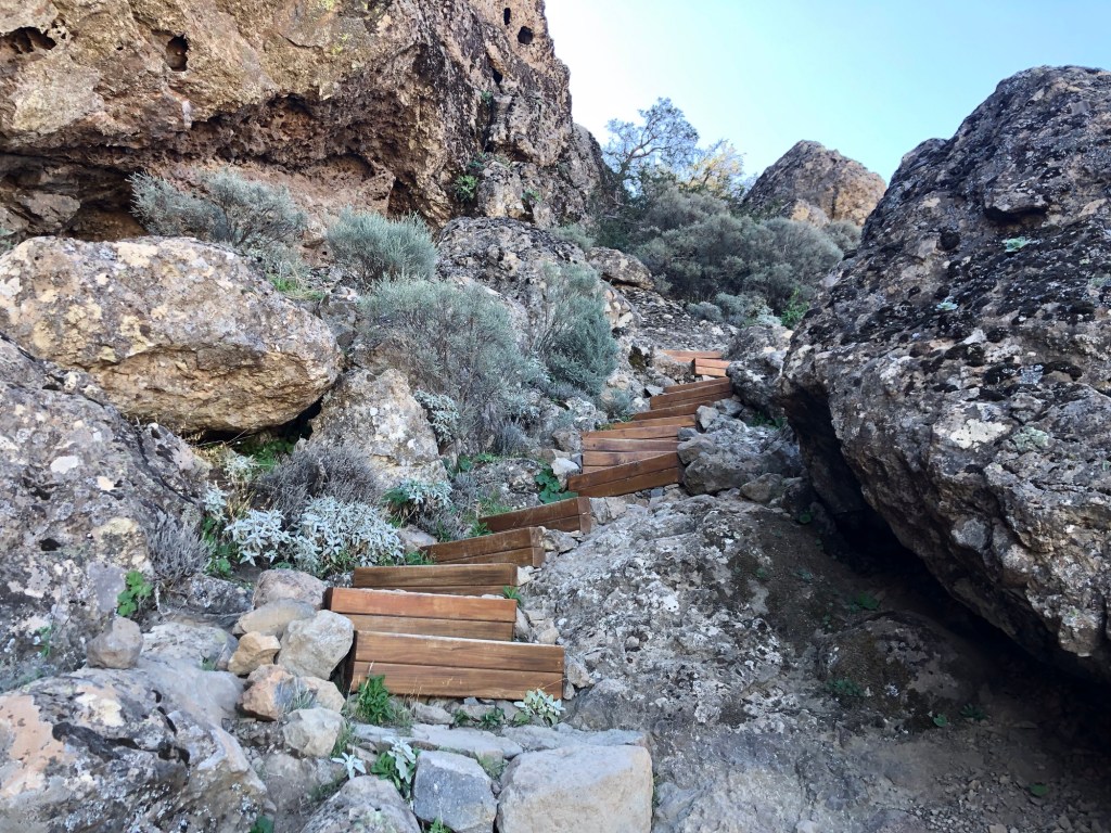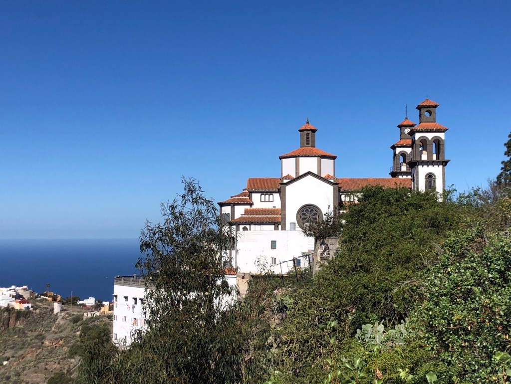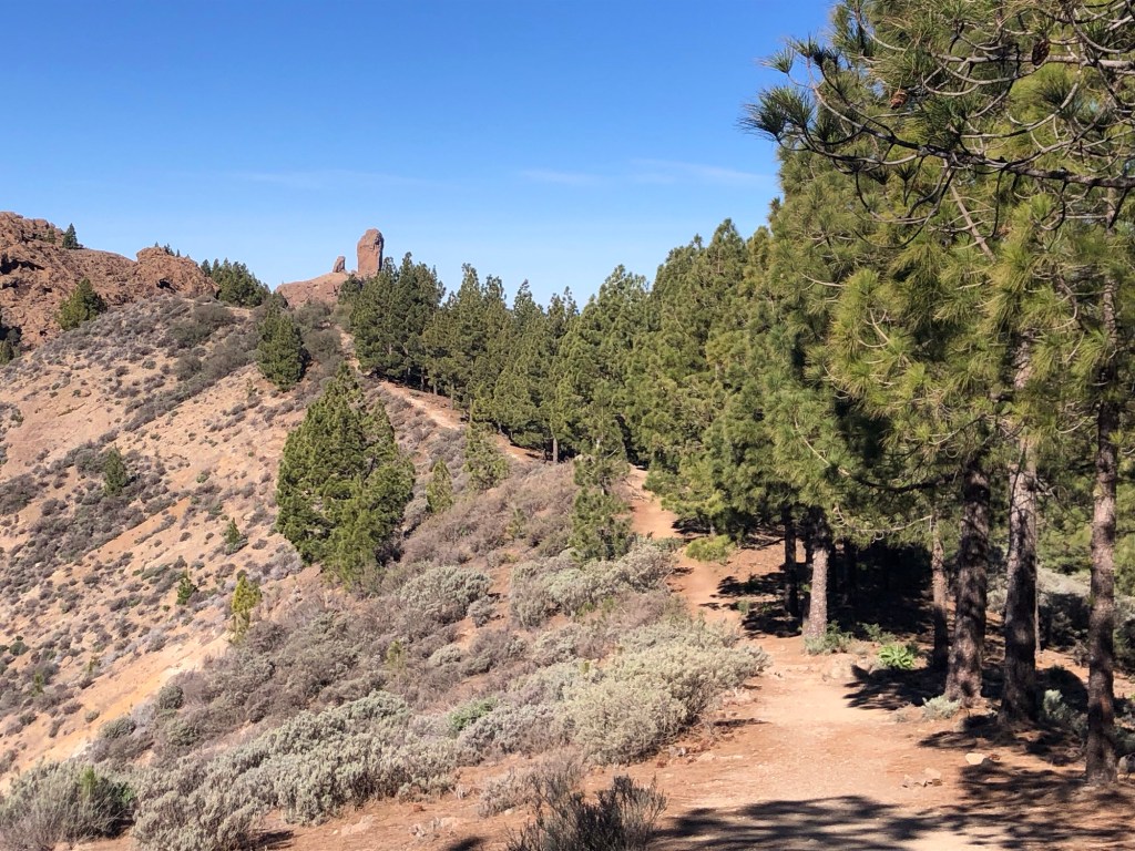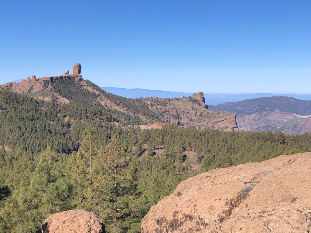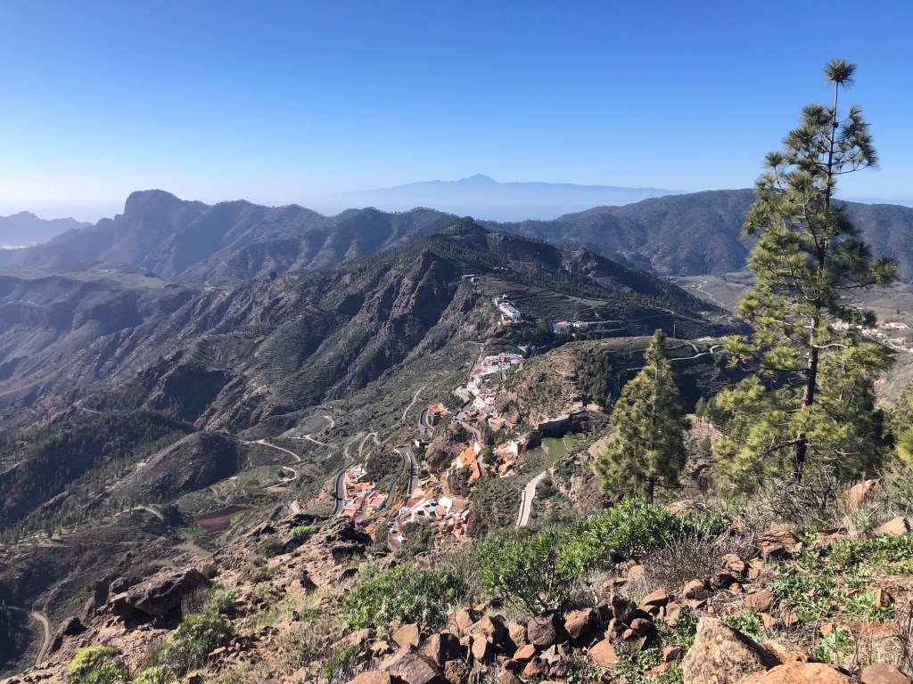 Our base for the first three days – La Hacienda del Buen Suceso, set within a banana plantation just outside the town of Arucas, near the north coast of the islandDay 1: The Caldera de Bandama is technically a maar (rather than a caldera), a volcanic crater formed when groundwater comes into contact with hot lava or magma, causing the volcano to ‘blow its top’ – this happened around 2,000 years ago in this case, making the eruption one of the most recent on Gran CanariaOur walk took us around the jagged and undulating rim of the crater . . .. . . with views aplenty, from the tops to the oceanAbove us loomed the 570-metre high peak of Pico de BandamaThen it was time to descend the 200 metres to the floor of the crater . . .. . . a lush oasis and a quite special place, that boasts volcanic ash of various colours and some plant species, such as bugloso (a variety of borage) that are unique to the island (and indeed to the world)!Day 2: Today’s walk started from the small hill-town of Firgas, where the centre is adorned with ceramic street furniture and features . . .. . . before a walk out into the countryside, and a prolonged descent . . .. . . into the Azuaje GorgeCrossing the stream bed at the bottom of the ravineA small wayside shrine . . .. . . on our way back up the other side of the gorgeViews to the north-east, over the island’s capital, Las PalmasWe reached our end-point by the church in the town of Moya, where we took a taxi back to our hire car in FirgasBack at the Hacienda after our exertions, we enjoyed a shot of the local banana liquorDay 3: We drove up into the hills, to our new base at the Hotel Fonda de la Tea in the town of TejedaContemplating the route up from Cruz de Tejeda, at 1,500 metres of elevation, where our third day’s walk started . . .. . . before climbing to the ridge-top on our path towards ArtenaraTurning south now, with the ridge ahead of us and some interesting rock formations just below usWhich way now?Just keep following the ridge line!Some fabulous views over Tejeda town well below us, and up to the standing rock of Roque Nublo on the far side of the Tejeda Caldera, the latter being a huge elliptical crater measuring around 10 miles across and 15 miles long, the result of a massive ancient volcanic explosionInto the woods on another scenic section of the path . . .. . . before we reached some prehistoric troglodyte cavesStarting down at last . . .. . . towards our destination of Artenara – and in the far distance a view of Mount Teide, across the sea on TenerifeArtenara village, at 1,270 metres above sea level, is the highest settlement on Gran CanariaDay 4: Our starting point today in the wonderfully fragrant pine woods of Llanos de la Pez . . .. . . soon emerging for some clear views of Roque Nublo – our circuit would take us to the base of the island’s central marker, that stands at 1,813 metres above sea levelAs ever, a climb . . .. . . to the top of Montañon (1,762 metres)Then a rocky path down, made easier in parts by some newly-installed steps!After a fine picnic lunch at the Degollada de la Goleta at the base of Roque Nublo, another climb awaited us . . .. . . back into the pine woodsSome colourful volcanic debris . . .. . . and a final view of the rock . . .. . . before the drive back to Tejeda, in time for ‘Happy Hour’Day 5: From the viewpoint near Cruz de Tejeda, on the way to the start-point for another fine day’s walk . . .. . . that set off from the rim of the small crater of Caldera de los MartelesAfter exploring the crater a prolonged climb ensued, first along a pumice track, strewn with huge fir cones . . .. . . and then up through the pine woods at the head of the Barranco de Guayadeque ravine . . .. . . eventually emerging onto a high ridge, with views to the ocean off the southern coast of the islandAfter several miles the path turned back on itself, into the Barranco (ravine), through bright red volcanic soils . . .. . . that support the lush vegetation of cacti, agave plants, almond and fig treesA fabulous promenade . . .. . . affording more huge vistasThe start of the 300-metre climb back up . . .. . . and a welcome break whilst this determined herd headed past, downslopeA roadside stop on the drive back, for a far-reaching view across the water to Tenerife and its volcanic summit of Mount Teide (which at 3,718 metres of elevation is also Spain’s highest point)Day 6: A shorter walk to finish, on the hills above TejedaAfter a steep climb on the path towards La Culata, some great views over to Roque Bentayga . . .. . . and above us to Roque NubloDescending once more into Tejeda . . .. . . for a visit to the town’s small museum of medicinal plantsAn afternoon drive out to Roque Bentayga . . .. . . for some huge views in every direction around the ancient calderaBack in Tejeda for the sunset after another great day, and with a memorable week of walking and exploration to reflect upon