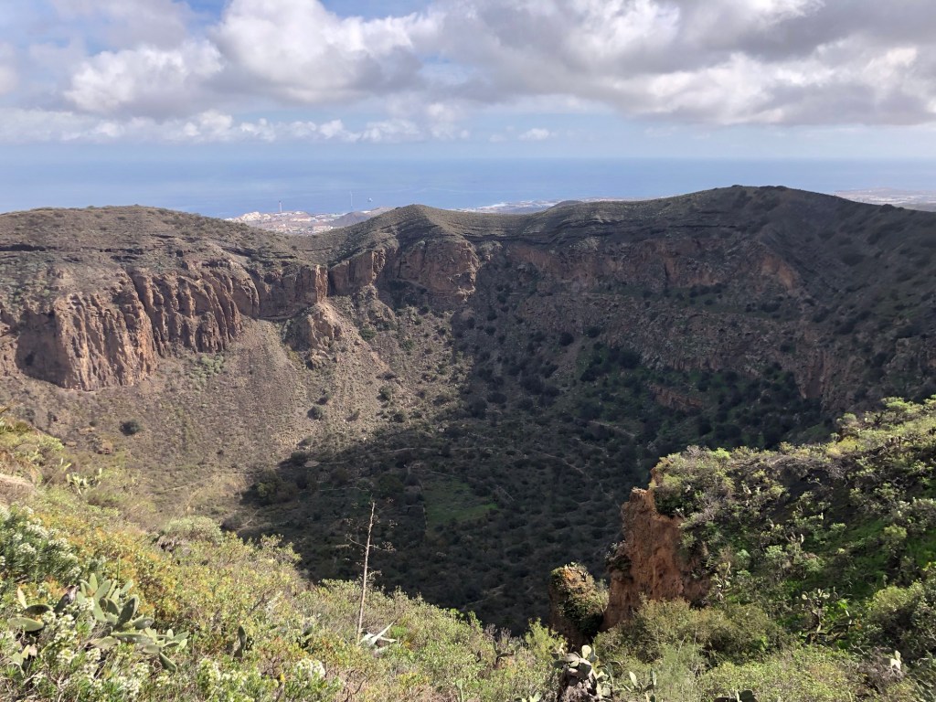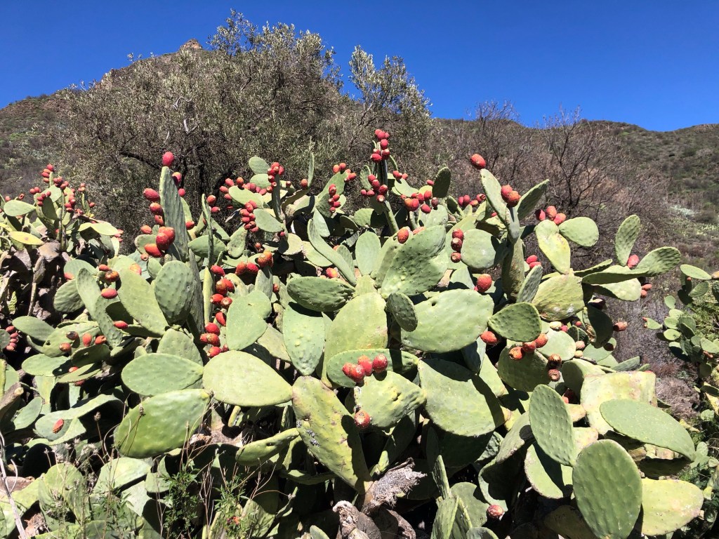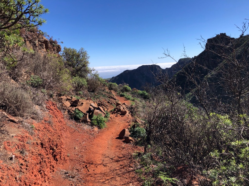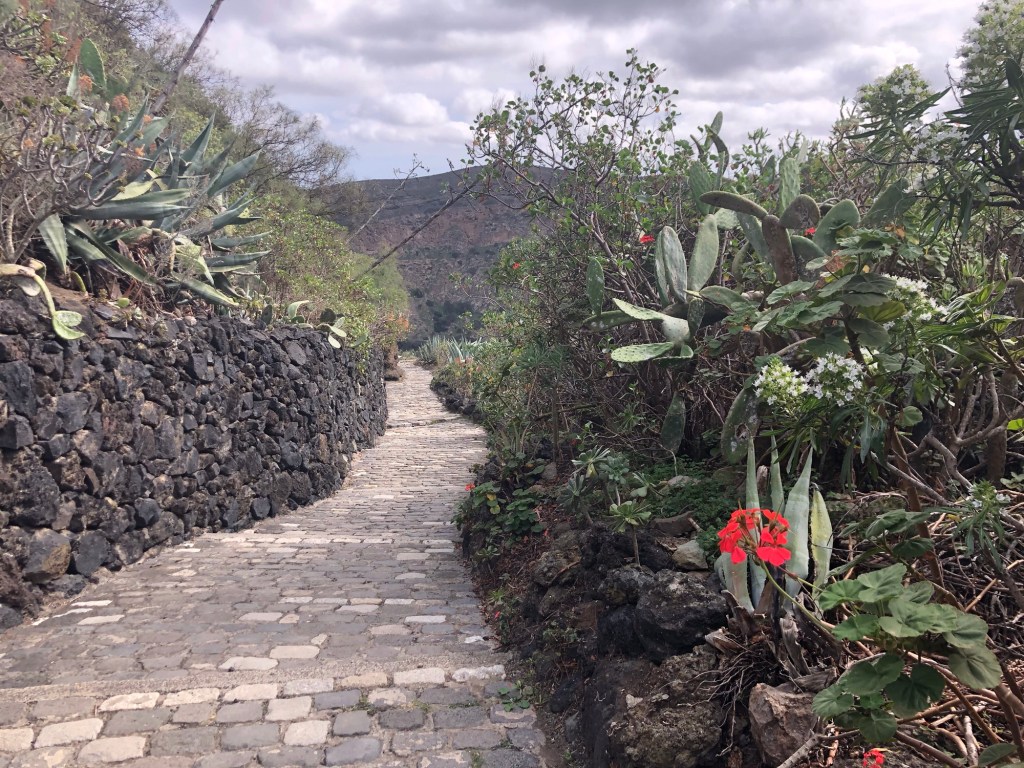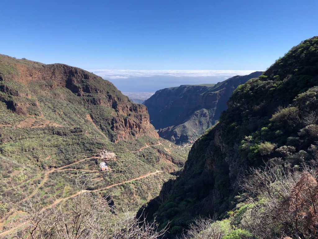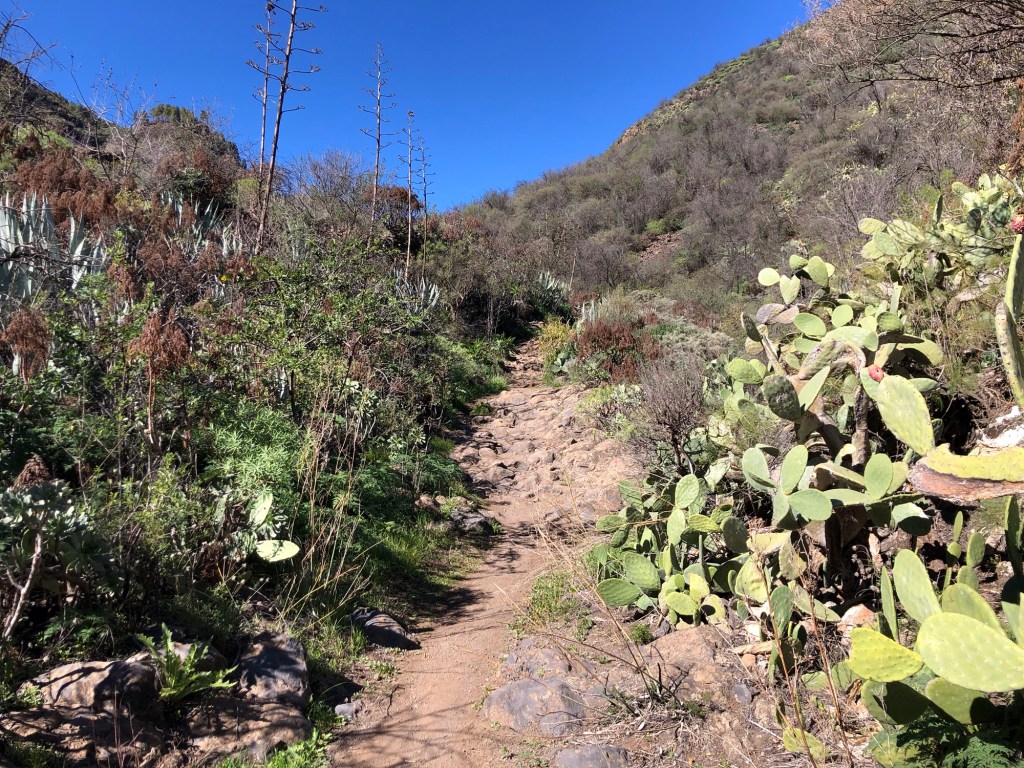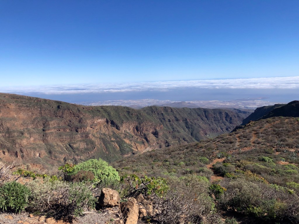 I hadn’t quite realised beforehand how far from their host country of Spain, nor how close to tropical latitudes, the Canary Isles are to be found. Lying within the belt of the trade winds, this southern part of Macaronesia experiences very different, sub-tropical, weather patterns to our temperate European climate. For much of the time the prevailing north-easterlies provide some pleasant respite from the heat, and winter can be an excellent time for exploring the island on foot. Even so, and even up in the hills, we set out prepared on our first day with five layers, but ended up wearing just T-shirts, and so I would guess that summertime would be a little warm for attempting the treks that we completed in the last week.