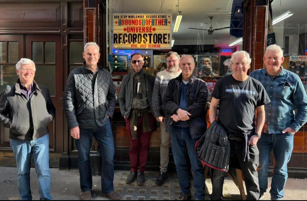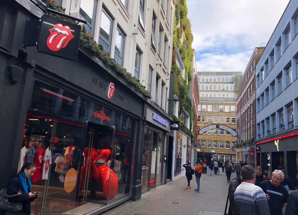 Our Music Muser group comprises Paul, Mark, Mike, James, Mark, George and myself: we have now been meeting for over six years, with a playlist each month on a different theme that is then put up for discussion at our monthly meeting – or when we are ‘on tour’, like today!We started our journey in Denmark Street WC2, the UK’s ‘Tin Pan Alley’: the name (taken from its New York equivalent) dates from the 1920s when the road first became home to an increasing number of music shops, publishing houses and, later, recording studios – Hanks was established in 1985 . . .. . . and sells guitars previously owned by many a rock icon (currently an instrument once owned by Johnny Marr is available for a cool £15,999, whilst Jimmy Page’s ex has sold for an undisclosed sum)Just across the street is Regent Sound Studios, where a ground floor studio (two-track technology and egg box insulation on the walls) held the recording sessions for the Rollin’ Stones’ debut EP and the band’s first two albums, as well as hosting The Kinks’ ‘You Really Got Me’, whilst Jimi Hendrix was thrown out ‘for making too much noise’Wunjo Guitars next door counts Pete Townshend as one of the shop’s early customers, whilst the neighbouring No.Tom guitar store once housed album design company Hipgnosis (Pink Floyd, Genesis, Yes, Black Sabbath, Led Zeppelin, 10cc, et al) on its upper floors – it might be odd therefore that the blue plaque on the building is not to a music artist but to Augustus Siebe, the inventor of the deep-sea diving helmetThe Coach and Horses on Greek Street lays claim to being ‘Soho’s most famous pub’, bearing witness to many a gangster and celebrity over the years . . .. . . whilst the Ship Inn on Wardour Street has also enjoyed a colourful history in the music world: it was the haunt of many a rock star, and stories include Elton John buying a drink for everyone in the establishment after recording ‘Candle In The Wind’ in the nearby Trident Studios, Jimi Hendrix falling base over apex down the stairs after a drunken tryst on the upper floor with a barmaid, and Keith Moon pouring whisky over the bar before setting light to the place!The Sounds of the Universe record store was once upon a time the Bricklayers Arms, a meeting place that, in 1962, spawned the Rollin’ Stones (the group dropped the superfluous apostrophe to become The Rolling Stones as they broke through during the following year)Carnaby Street W1 was the birthplace of ‘Swinging London’ in the 1960sAs the blue plaque attests, the Apple Corps HQ at 3 Saville Row owes its fame to the impromptu 42-minute Beatles set on the rooftop on 30 January 1969 that comprised nine takes of five new songs and became the group’s final public performance before their disbandment the following year: as John Lennon put it ‘I’d like to say thank you on behalf of the group and ourselves, and I hope we’ve passed the audition’And to end on a Beatles theme, as the tour concluded we adjourned for refreshment and some rock ‘n’ pop banter in the courtyard behind the Chequers Tavern on Duke Street – the pub backs onto Mason’s Yard, once home to the Scotch of St James nightclub (another haunt of numerous rock musicians and the swinging London set of the mid-1960s) and to the counter-culture Indica Bookshop and Gallery where John Lennon first met Yoko Ono in November 1966
