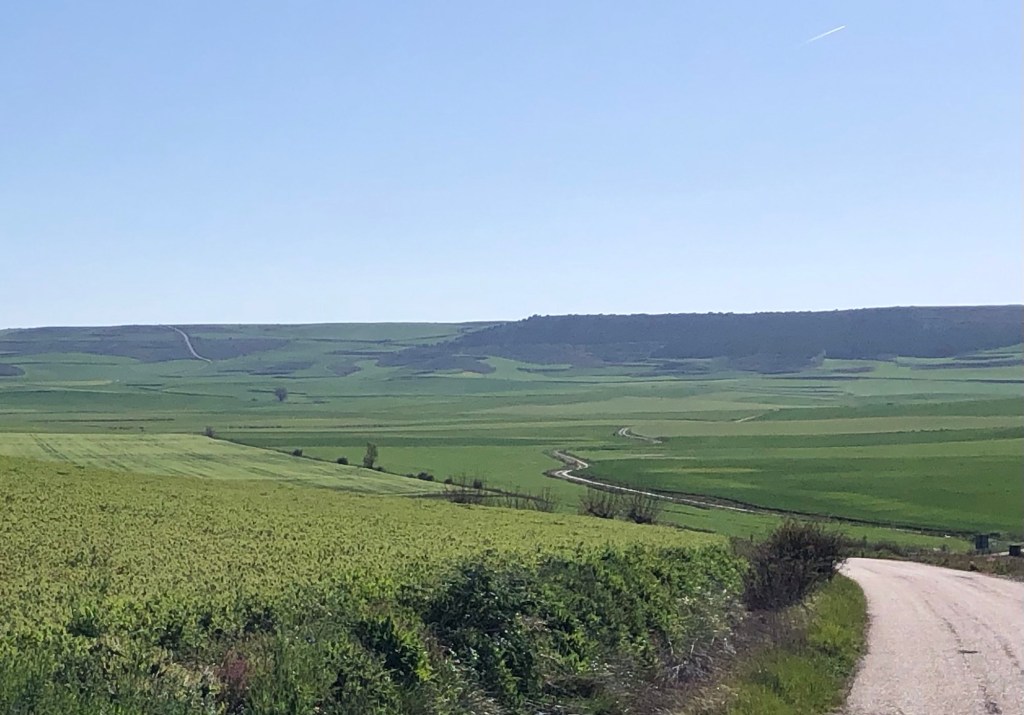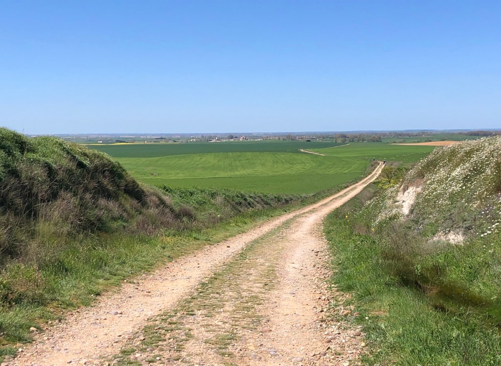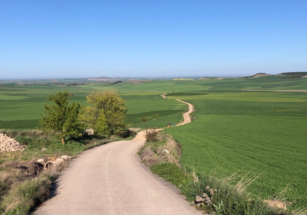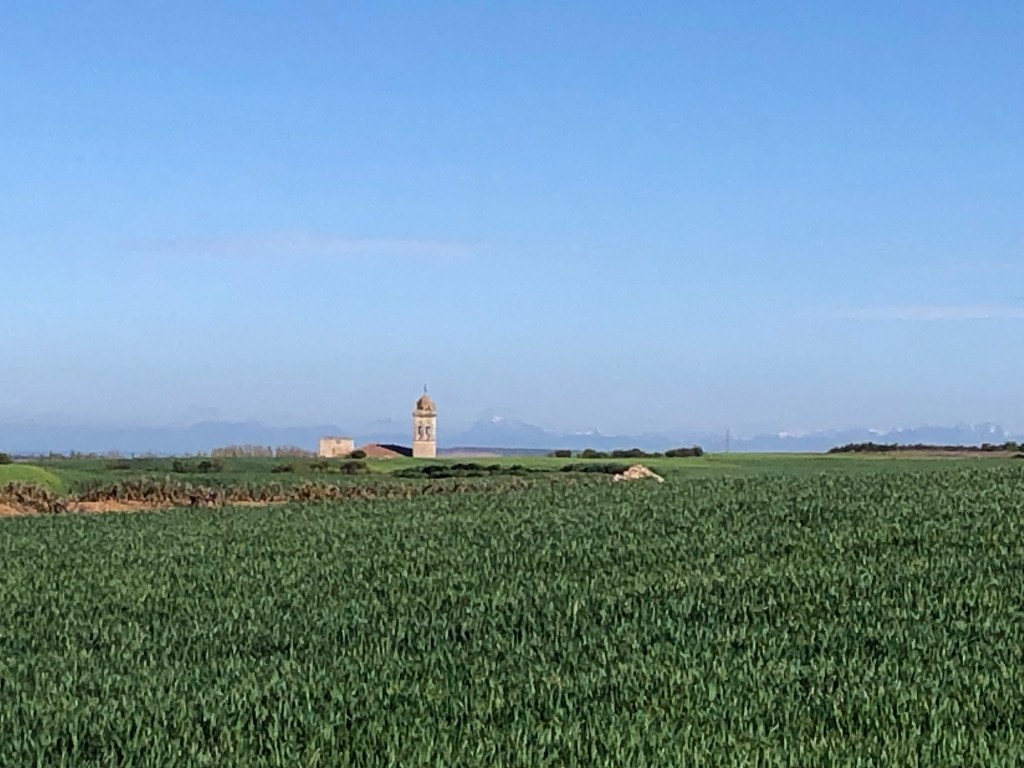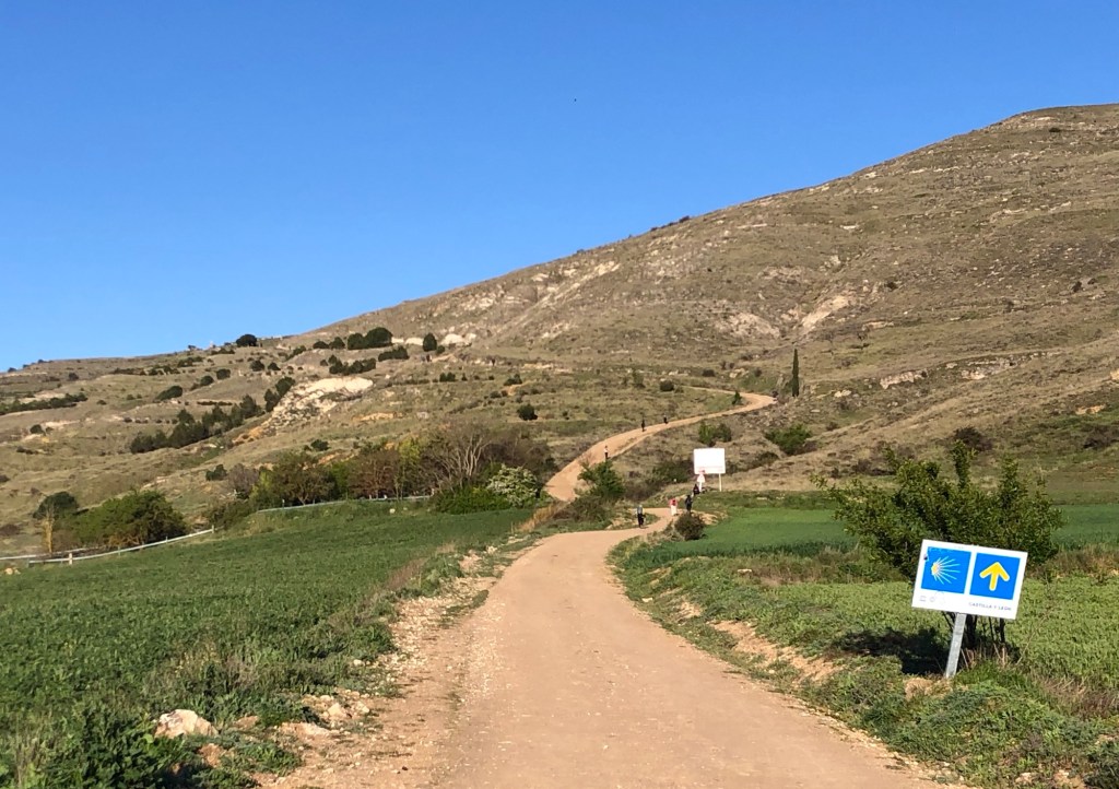 The weather gods must be on my side. Clear blue skies greeted me at dawn this morning (due to the oddities of the time zone, sunrise is not until sometime after 7.00 am here), and so it remained all day on the Camino Francés. We have a settled period in prospect for the days ahead and, after a week of cool headwinds that gusted quite strongly at times from the west, we now have stillness. The air remains cool, and the visibility excellent, so today’s conditions were perfect for walking, and the only issue over the next few days might be the heat, as temperatures are set to climb.