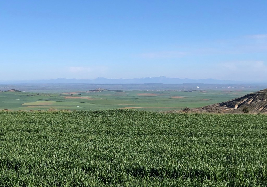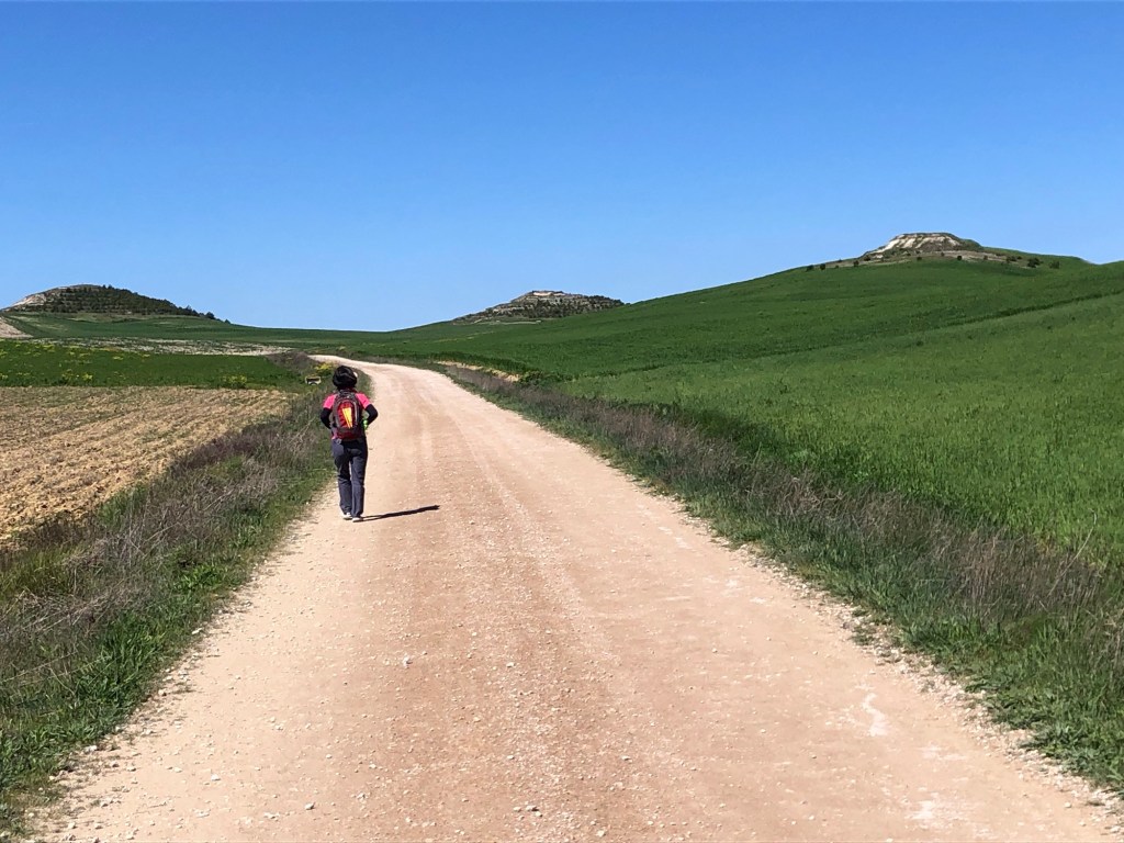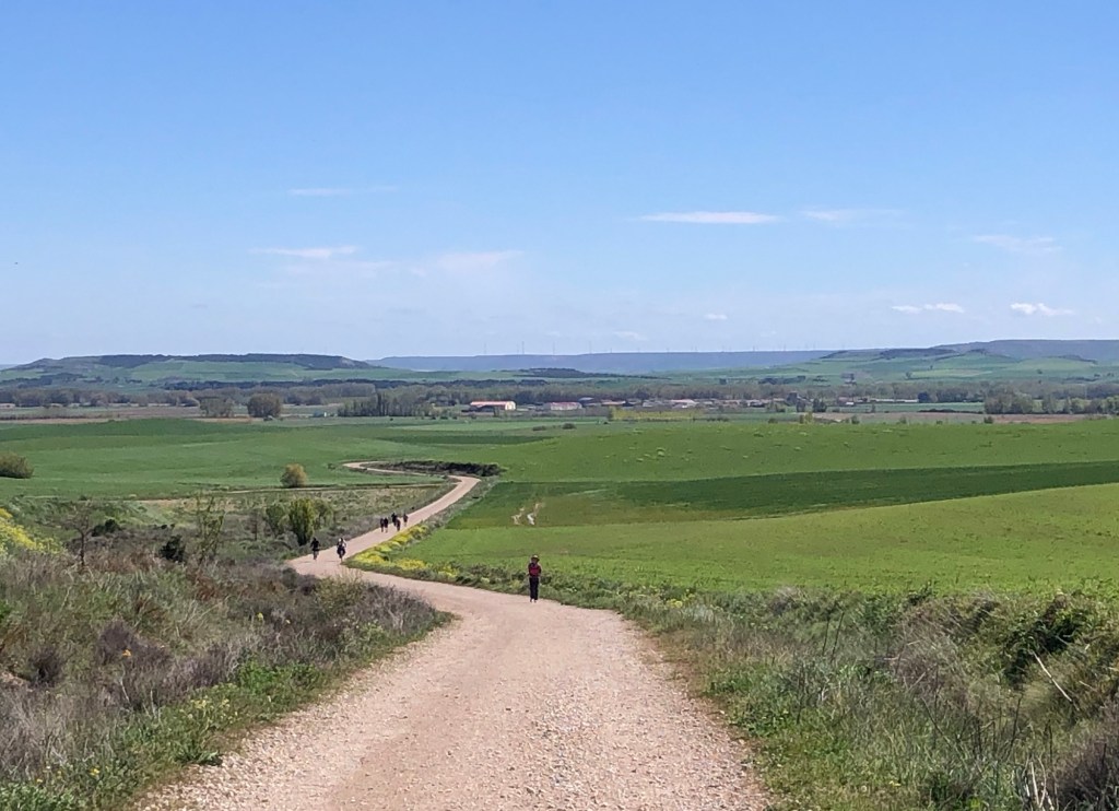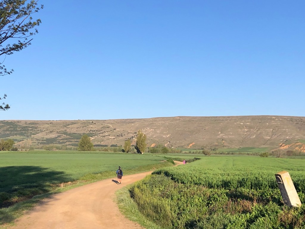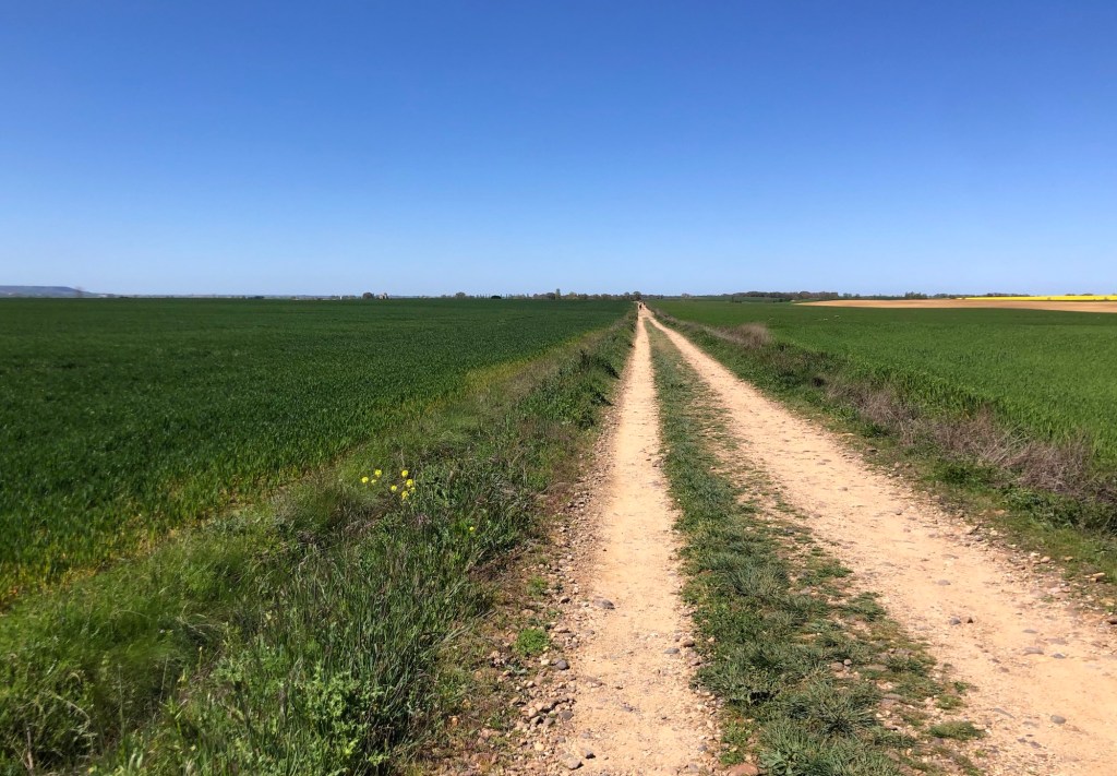 The weather gods must be on my side. Clear blue skies greeted me at dawn this morning (due to the oddities of the time zone, sunrise is not until sometime after 7.00 am here), and so it remained all day on the Camino Francés. We have a settled period in prospect for the days ahead and, after a week of cool headwinds that gusted quite strongly at times from the west, we now have stillness. The air remains cool, and the visibility excellent, so today’s conditions were perfect for walking, and the only issue over the next few days might be the heat, as temperatures are set to climb.