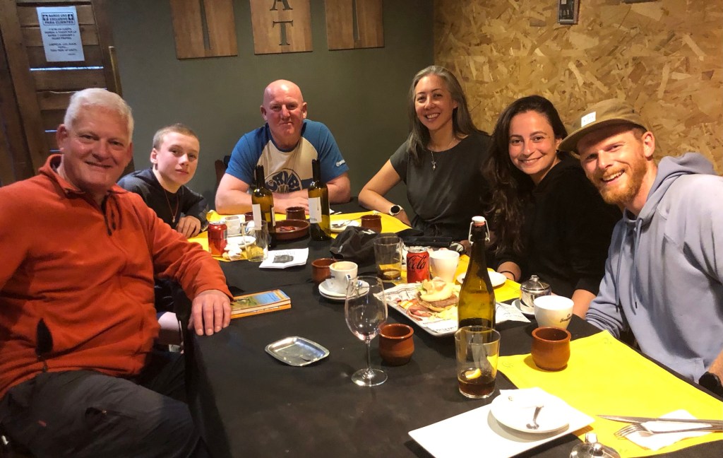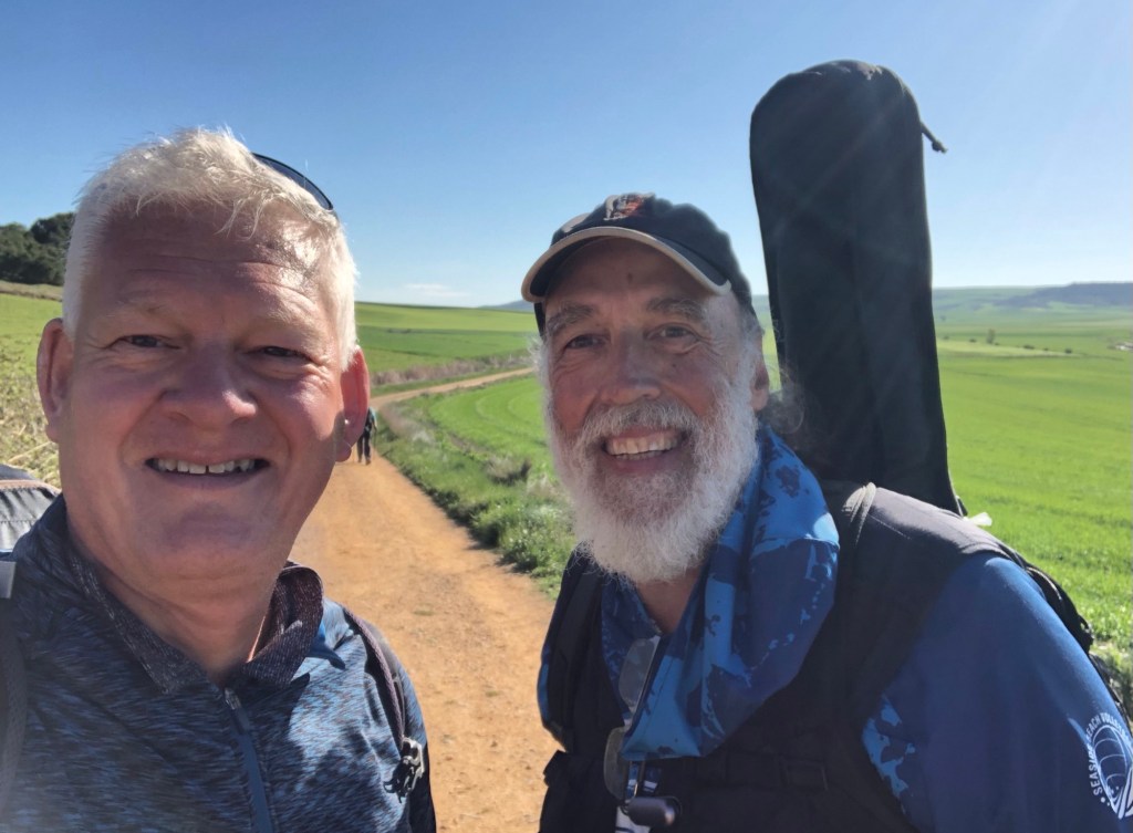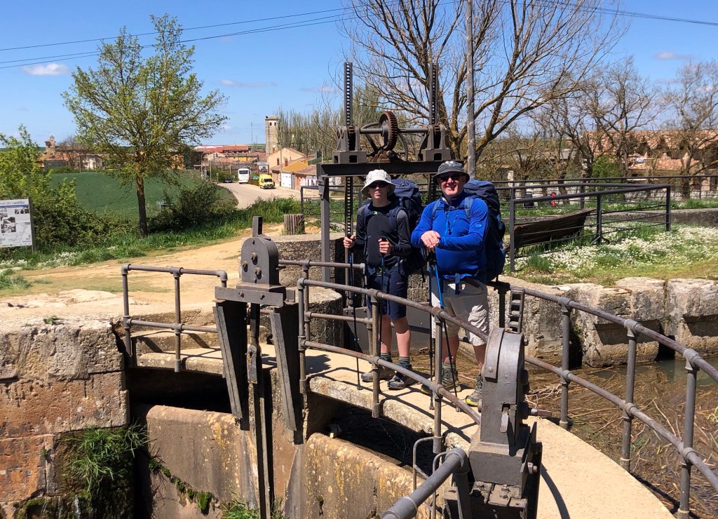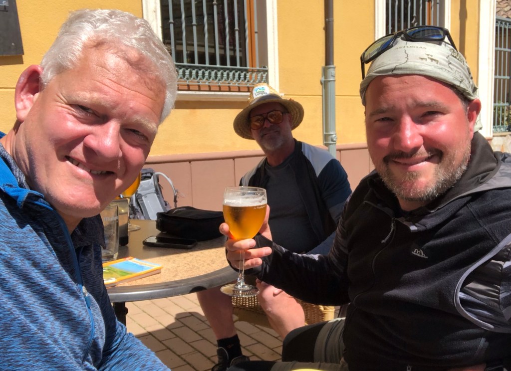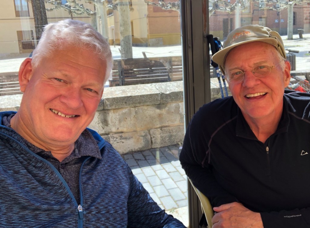 Today goes down as a fabulous walk over the high ground of the Maseta, with some unforgettable views. It must also rank as one of the more sociable days of my walk to date. I had barely walked a kilometre solo before striking up a conversation, mostly about music, with Kevin from the US (see photo below) that was still ongoing an hour or two later. After a brunch in Itero de la Vega, where our group’s various timings coincided to the extent that three tables were required, I walked with Susie from Australia until the village of Boadilla del Camino, and when we stopped for a water break a succession of walkers passed by, most of them known to us. I then joined father and son, Mike and Lincoln again, for the final leg into Frómista. A drink at our destination became quite a crowd scene, before seven of us went out for a ‘Pilgrim’s Menu’ dinner tonight (free wine and dessert with every main course ordered). In the process of all this I have added Austria and Hungary to my list of international Camino friends, making 26 countries now since the start of my walk. I say all this not so much to brag, as to give a flavour of the camaraderie available, indeed unavoidable, to all those taking on the Camino pilgrimage – if anyone is tempted, the journey really is a multi-national social whirl.