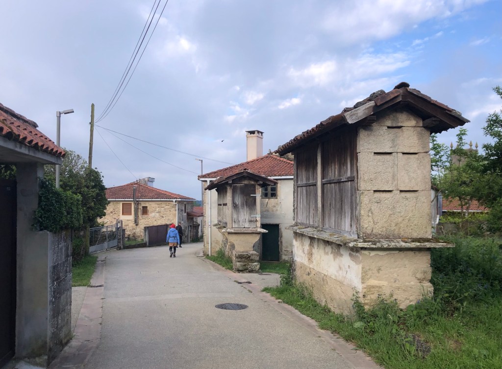 Today’s walk, similarly to the last two days since I left Sarria, has been characterised by a rolling landscape, much of which is wooded and with the remainder turned over to mixed agricultural uses of both crops and grazing land. Across Galicia the Camino Francés passes through several towns (including my last three overnight destinations of Portomarín, Palas de Rei and Arzúa, and my lunch-stop today of Melide), as well as a number of small villages in between, and this footfall generates much trade to incentivise cafés, bars, shops, hostels and other services along the path. The various Camino routes into Santiago now attract around half a million registered pilgrims per year, with this section of the Camino Francés from Sarria accounting for around 50% of the total, and accordingly on many sections of this last 100 kilometres of the trail the small villages and hamlets seem to merge into one another, with commercial outlets interspersed with farms, small-holdings, and private houses (often with well-tended yards and kitchen gardens), as well as the churches, chapels and cemeteries that have presided over the pilgrimage route for centuries. The resulting small-scale scenery holds interest and surprise around every twist, turn and undulation of the path, and so, despite the numbers of trekkers, my last three days of walking have been, if not spectacular, then most pleasant.