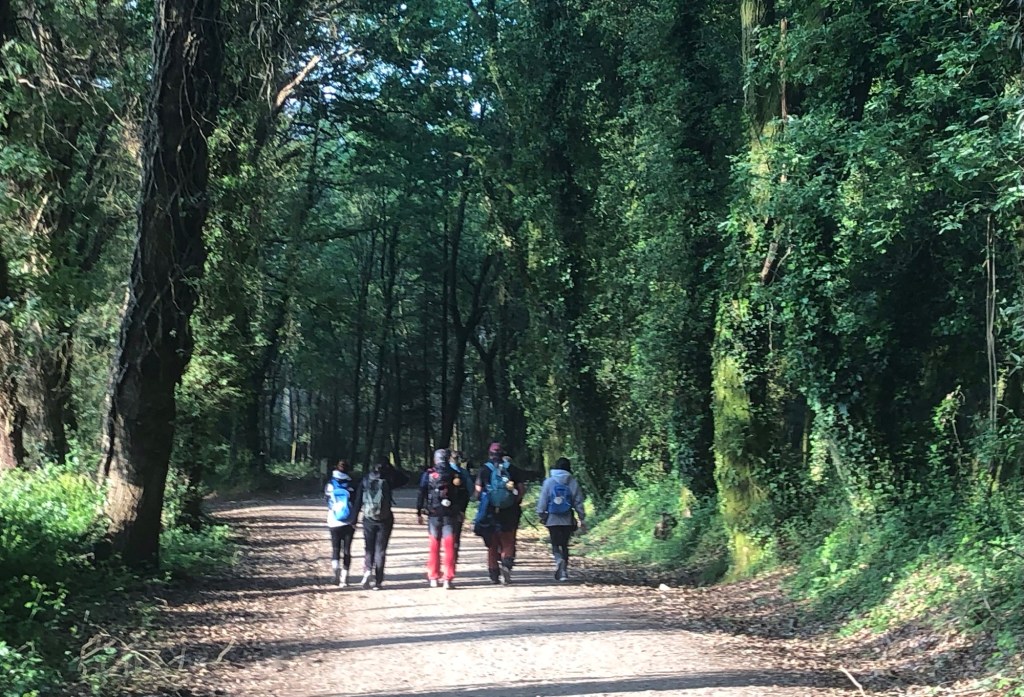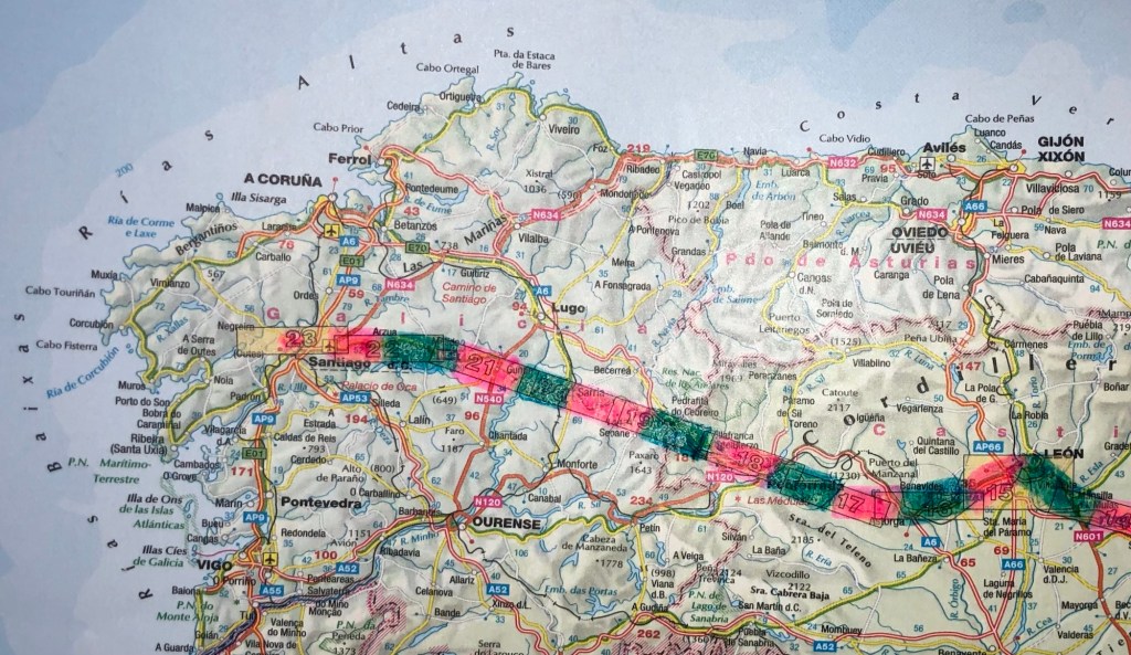 I have done a little research into the numbers of walkers now participating in the Camino pilgrimages. According to the Spanish Pilgrim Office, during the last calendar year (2024) there were just under 440,000 registered pilgrims converging on Santiago from various directions, and about half of these came via the Camino Francés. Most of these start their walk at Sarria: the figure for those walking from St Jean Pied de Port in France, on the walk that I have almost completed, was just over 33,000 last year, so 7.5% of the total. Pilgrim numbers have been climbing steadily and have roughly trebled in the last fifteen years, back towards the numbers believed to have walked the various routes in the Middle Ages. And for the first time, at least in recent years, female pilgrims (53%) now outnumber males. In terms of nationality, around a half are from Spain, with Italy, the US, Germany, Portugal, France, and then the UK, next in line (although empirical and anecdotal evidence suggests that the number of South Koreans has massively increased in the last year or two, apparently due to celebrity endorsement of the Camino). Anyway, here are my photos of today’s shorter ramble.