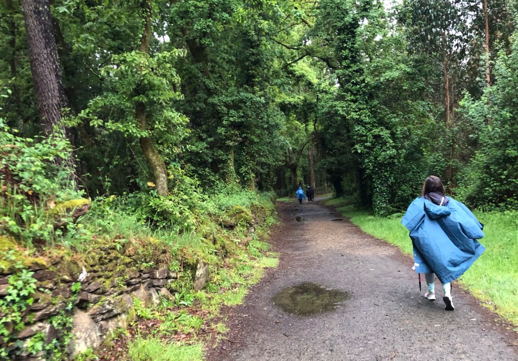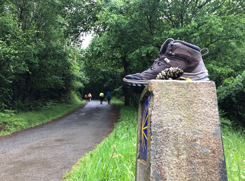 This is not my motto for life, but just for once, today, I can say that the journey took second place to the destination. The five hours that the walk took me, to cover the 20 kilometres from Pedrouzo (with breakfast en route of course), were again on undulating tracks, but this morning mostly shrouded in fine rain, as if drifting through a soft cloud – waterproofs were deployed, but really us pilgrims today got damp rather than wet. We were spared the forecast of ‘heavy and thundery showers’, which might have subdued the spirits and the festivities at the finish, and for that we were all most grateful. A few photos of this final day of my Camino.