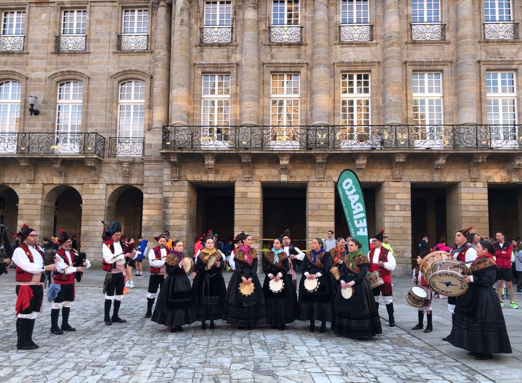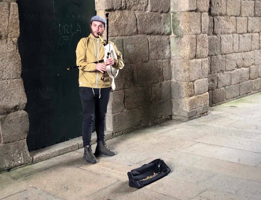 Of all the long treks that I have done in my time, perhaps this one was the most emotional to complete. The square outside the Cathedral in Santiago de Compostela is renowned not just for the building and its Christian significance, but for the sheer elation and celebration of the many pilgrims that converge there in significant numbers from their various pilgrimage trails. There are walkers, cyclists and horse-riders; individuals, and all sorts of groups – from couples, to small bands of friends, right up to sponsored teams of a dozen or two – all revelling in the completion of their journeys. Men, women and children, of all ages, from so many countries; some crying, many cheering, and all posing for the necessary photographs, and messaging family and friends back in homes across the globe. We even had a wedding taking place in the square today, along with Galician musicians playing sporadic melodies, some impromptu singing and chanting, and the church bells a-ringing. Somewhere in all of the hubbub, and arriving on my own by design, I had my private moment of celebration and reflection, and that was important. And then, just minutes later, I spotted (or was spotted by) several others who had been on the trail with me at various times – Debbie, Katie, Sophie and Jackie from England (that I have bumped into a few times these last few days), a couple from South Korea (who I have been on nodding terms with spasmodically throughout the trek), and then my friend Niall, who appeared with his certificate, having reached the destination a half hour or so before me. Scenes all, that will stay with me forever.