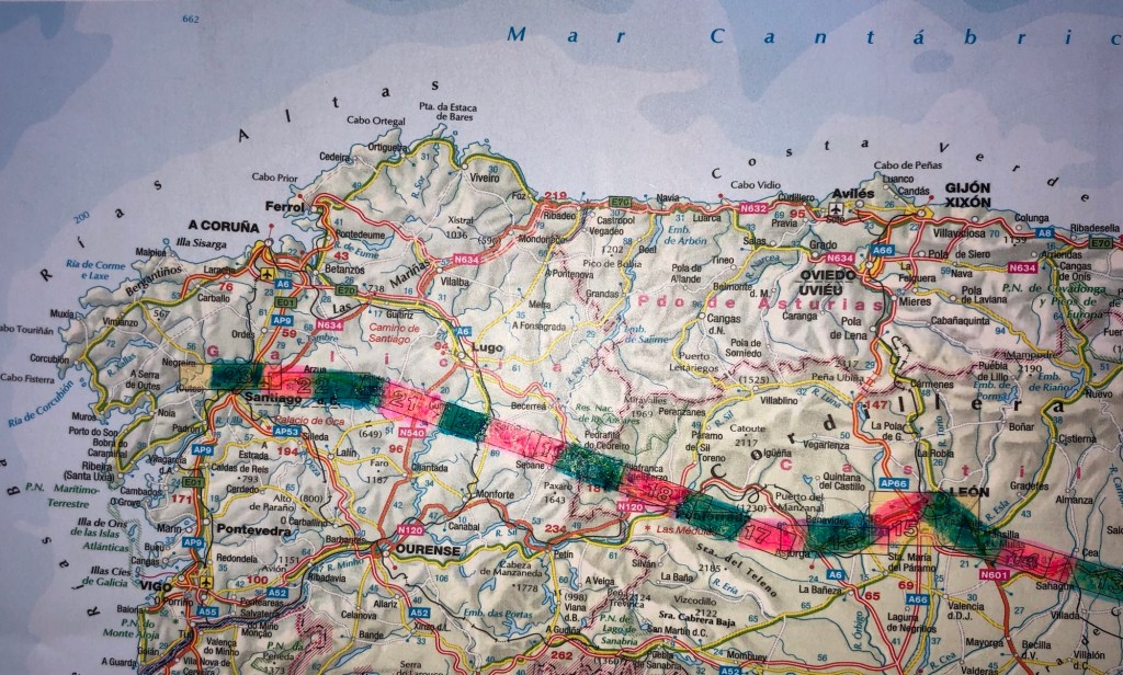 So this afternoon I have checked into a mid-range hotel for two nights, and I have put my feet up for a much-needed rest. I have survived the Camino Francés without any slips, trips or falls, with no blisters to report, and with stronger shoulders (that have eventually stopped complaining at the weight of the pack hanging from them). I have also kept myself well, and free from the coughs, colds and stomach upsets that have done the rounds of the albergues – and so, all in all, I have had a fortunate Camino. And I have even remembered not to forget my phone charger every morning (so far)! I am not signing off quite yet – I have two more days of sightseeing here to report on, and then I will put together some considered reflections on my Camino journey when I am back home, plus some spreadsheet-verified facts and figures – and my Camino playlist of course!