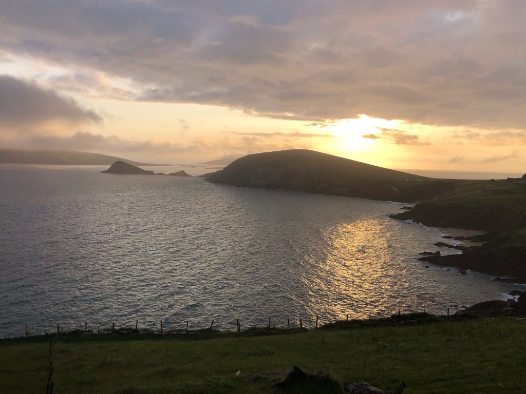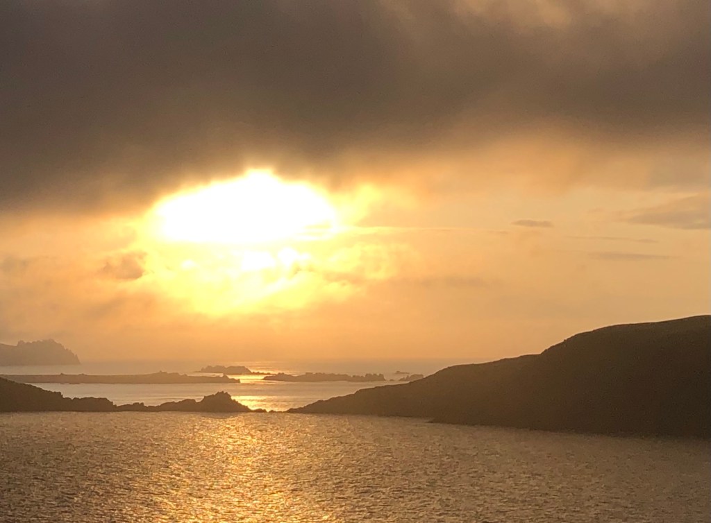 Looking westwards over the Atlantic: the summer solstice sunset on Saturday 21 June, from Dunmore Head on the Dingle Peninsula